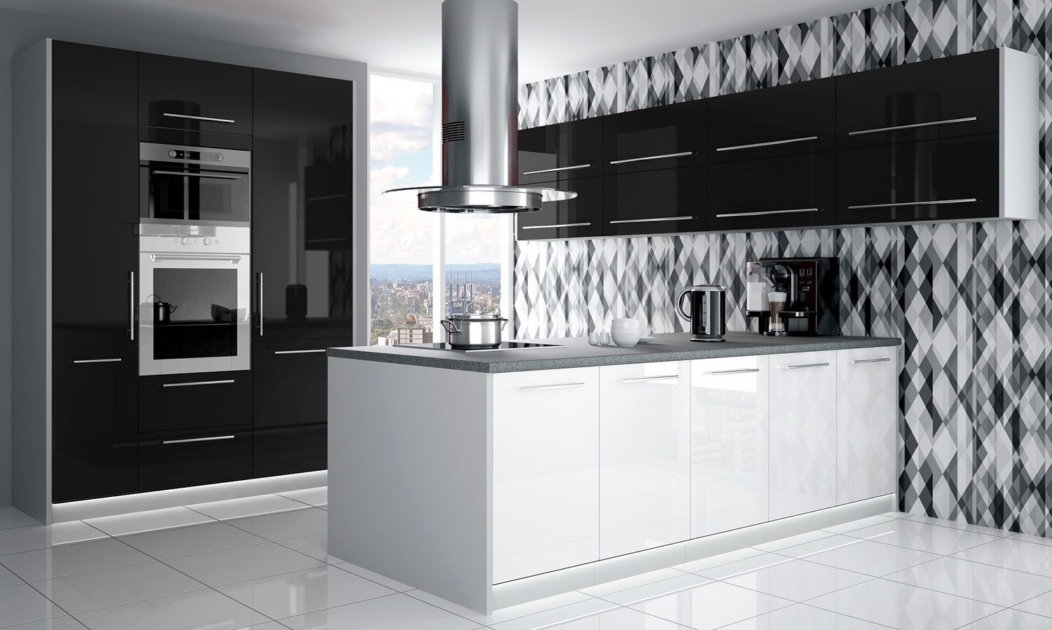 - Fronten Hoch- und Klappängeschränke: schwarz Hochglanz