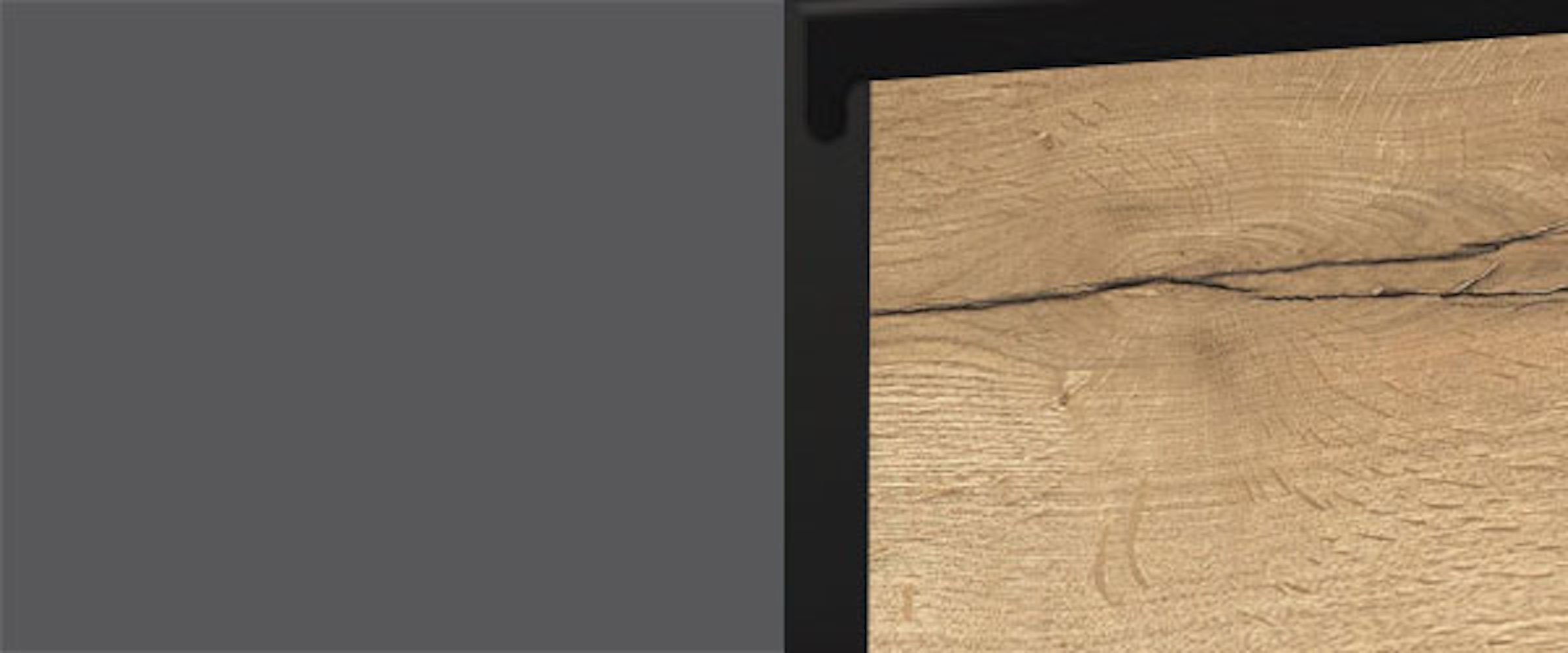 - Korpus grau matt / Front Halifax Eiche - schwarz