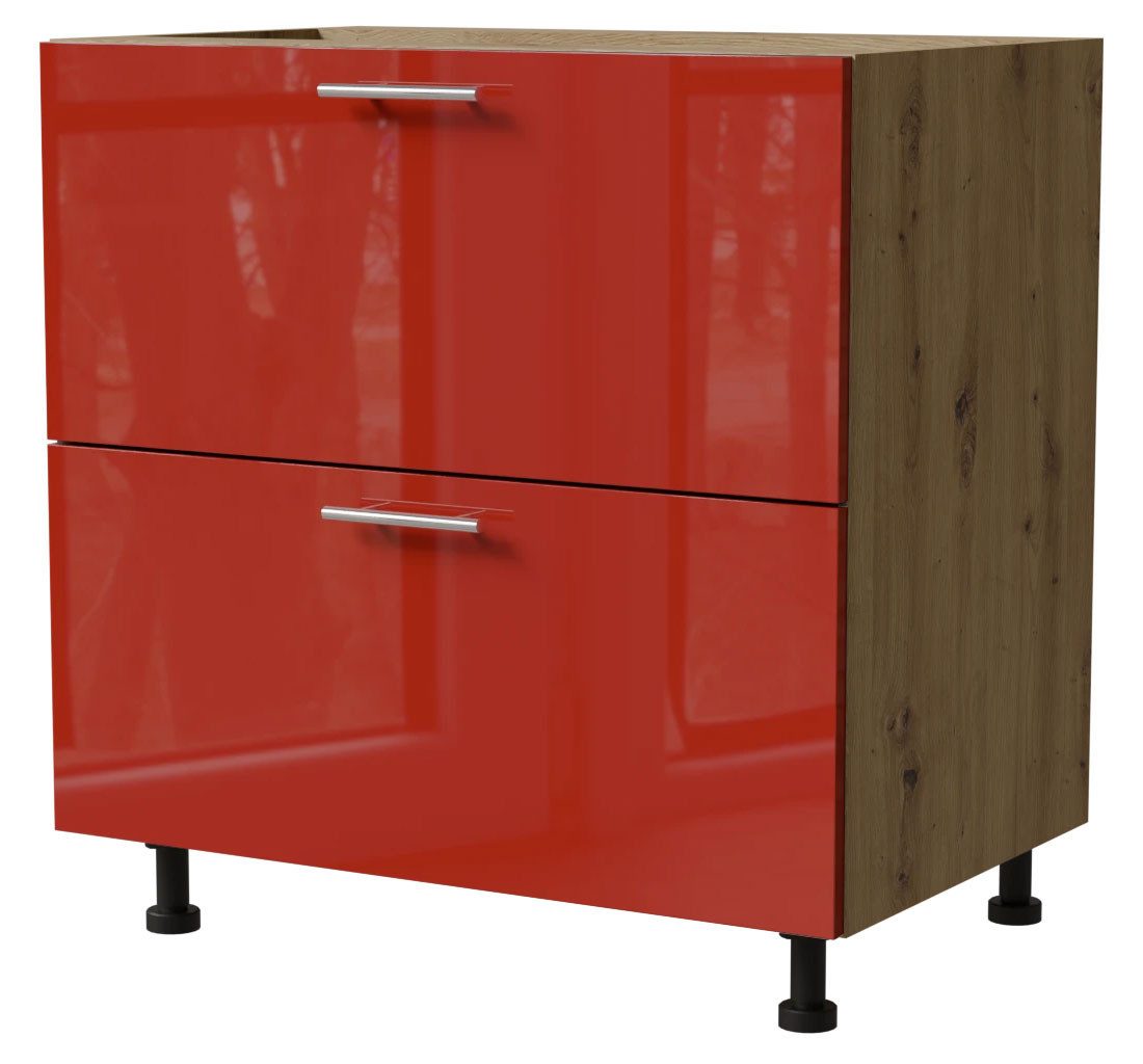 - Korpus Eiche Artisan matt / Front RAL 3002 karminrot Hochglanz lackiert (K7)