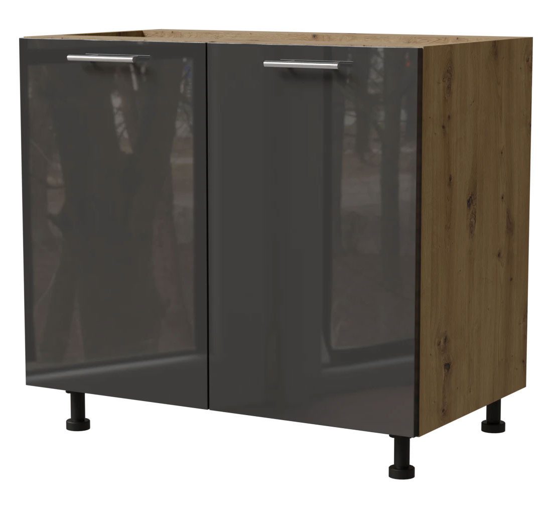 - Korpus Eiche Artisan matt / Front graphit Hochglanz