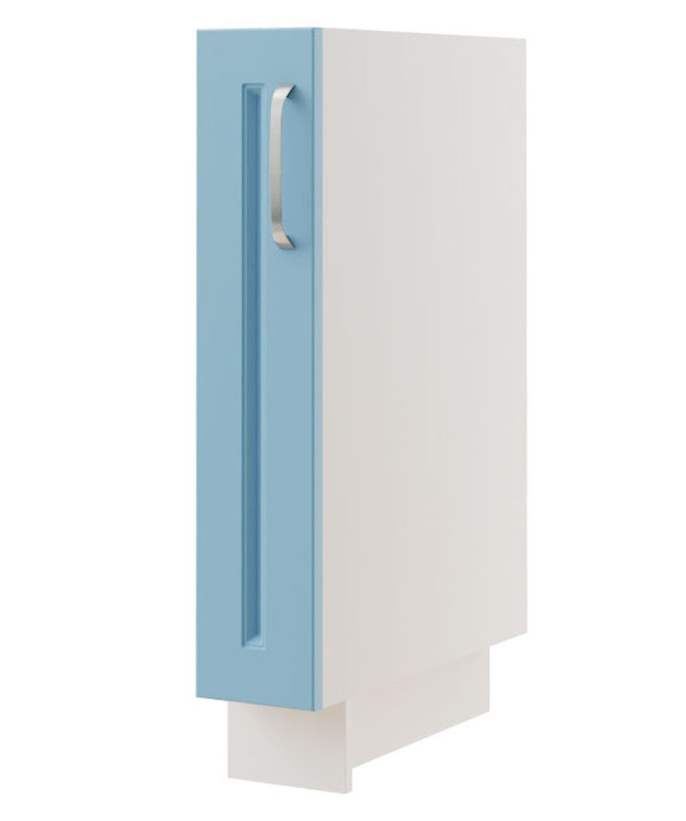 Die Unter-und Hochschränke sind mit farbig passender Sockelleiste (Korpusfarbe) und regulierbaren Füßen ausgestattet.