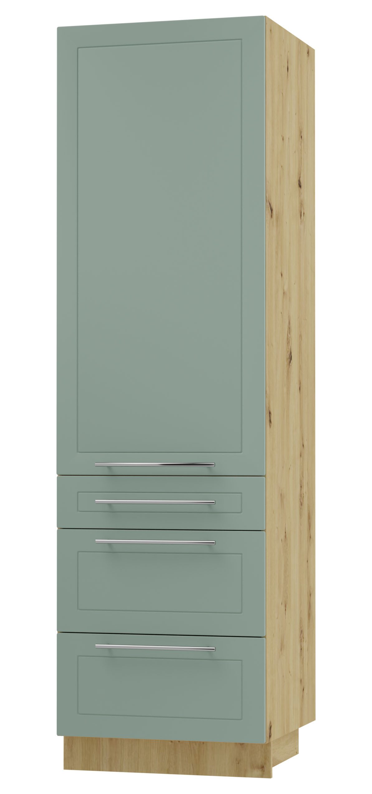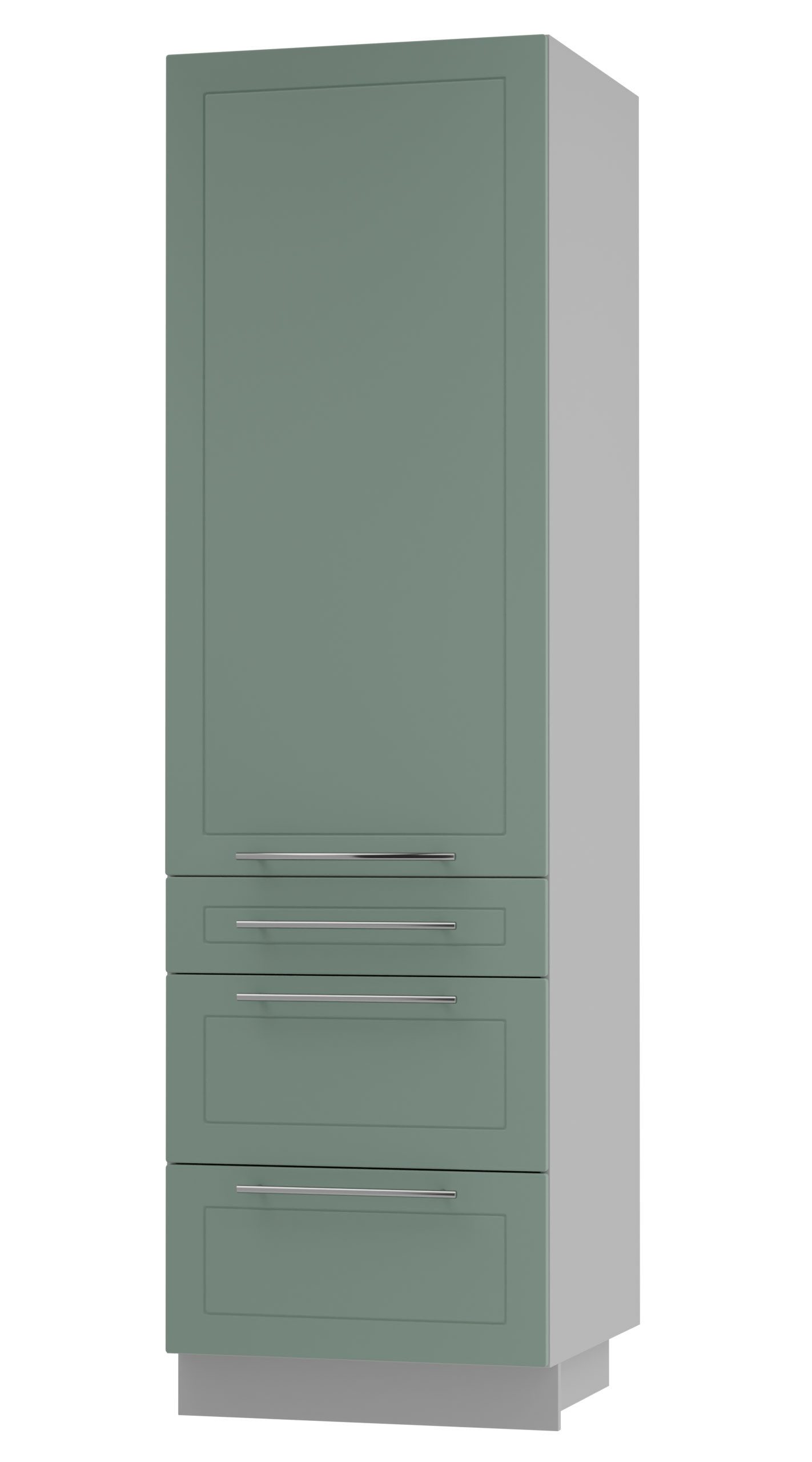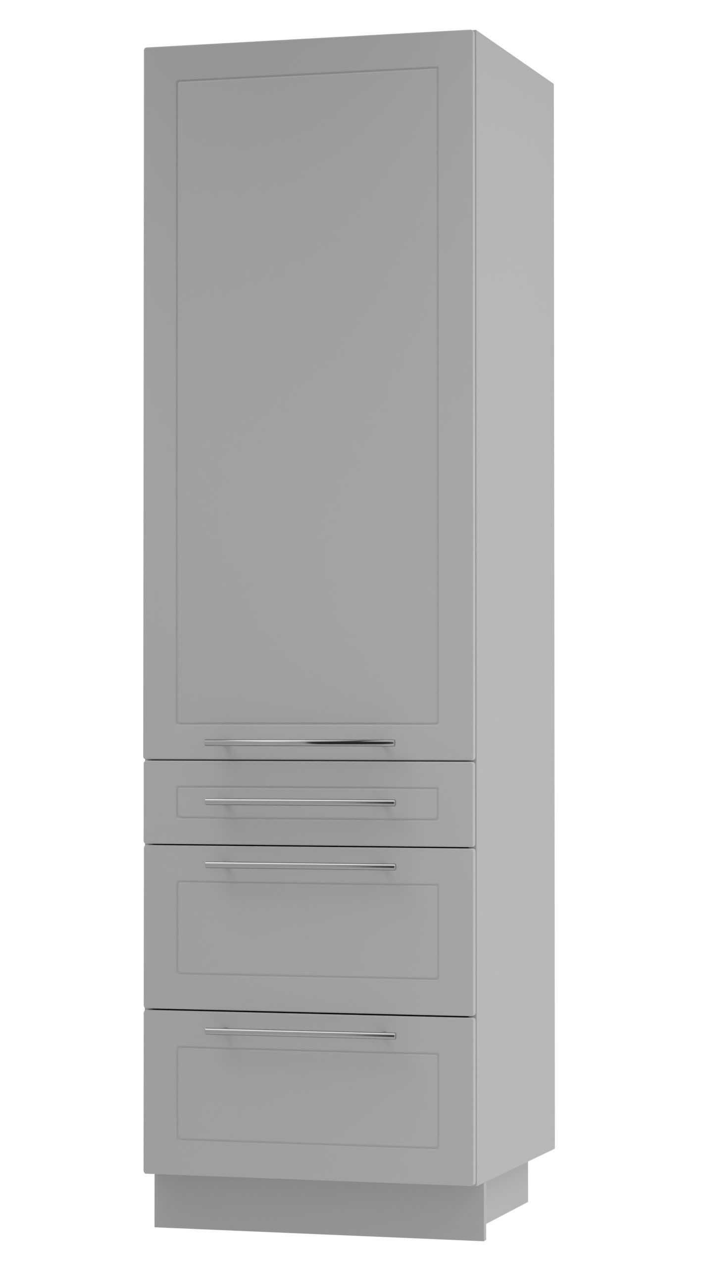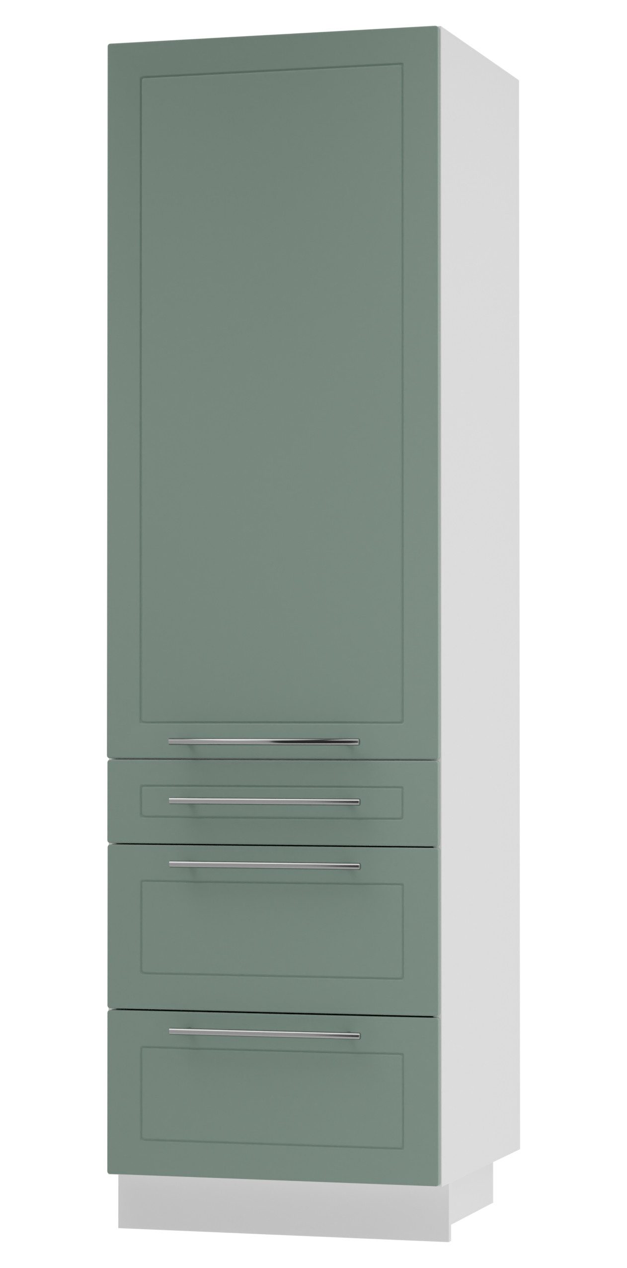 Die Schubladen dieses Vorratsschranks sind mit dem Blum Metabox System, in Teilauszug ausgestattet. Die Schubladen lassen sich bis zu 2/3 ausziehen. Für ein schönes Fugenbild lassen sich die Fronten in Höhe und Neigung individuell justieren. Die Metabox - Schubladen verfügen über das Airtic-System. Dieses System ermöglicht ein sanftes und geräuscharmes Спрятать der Schubladen durch Abbremsen und Selbsteinzug. Die maximale Belastbarkeit pro Schublade beträgt 30kg.