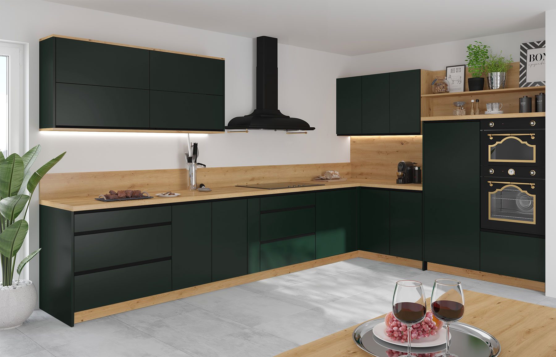 - Fronten: schwarz matt / smaragdgrün super matt