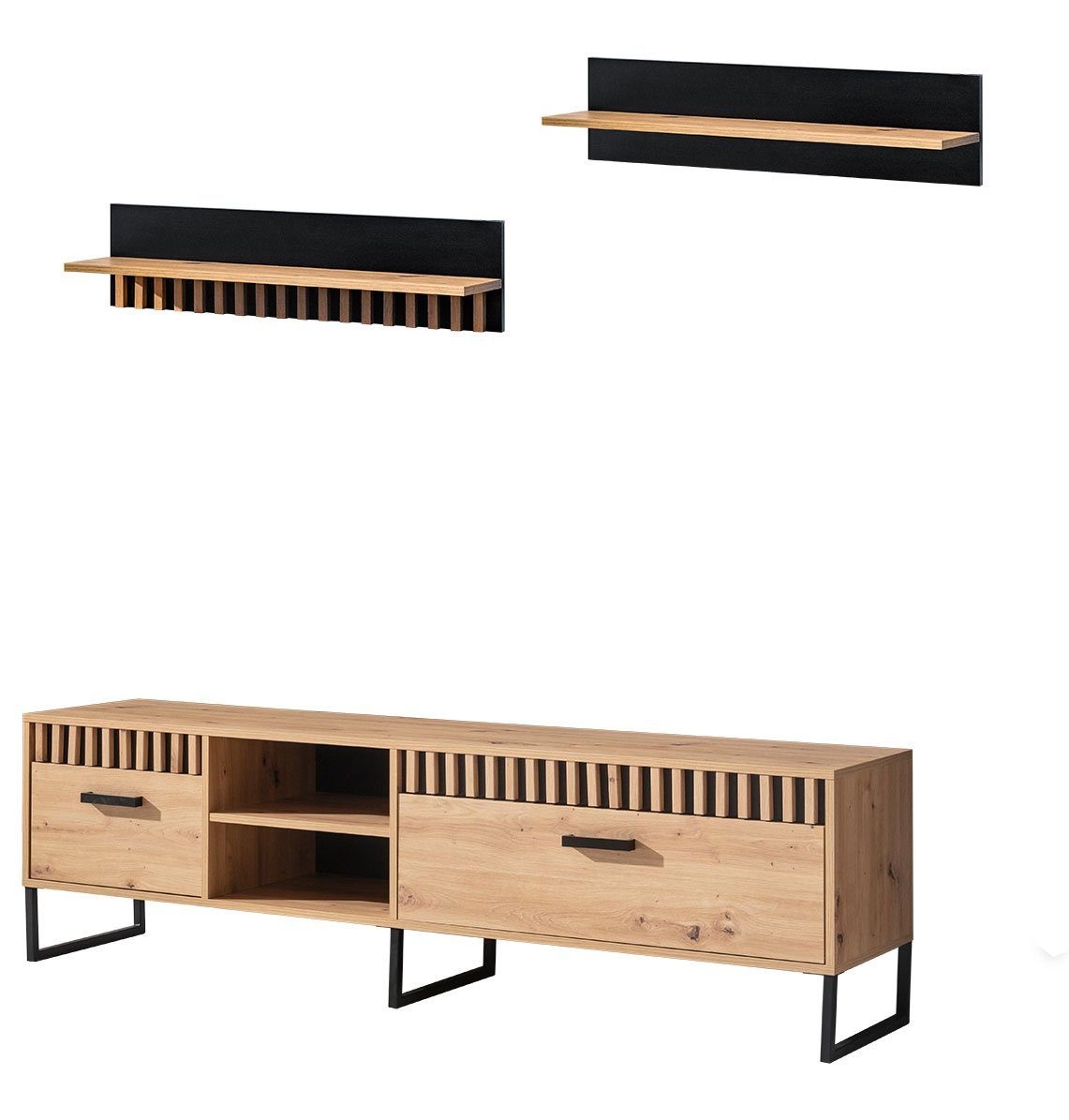 Dieses Lowboard und die Wandregale lassen sich hervorragend kombinieren und individuell nutzen.