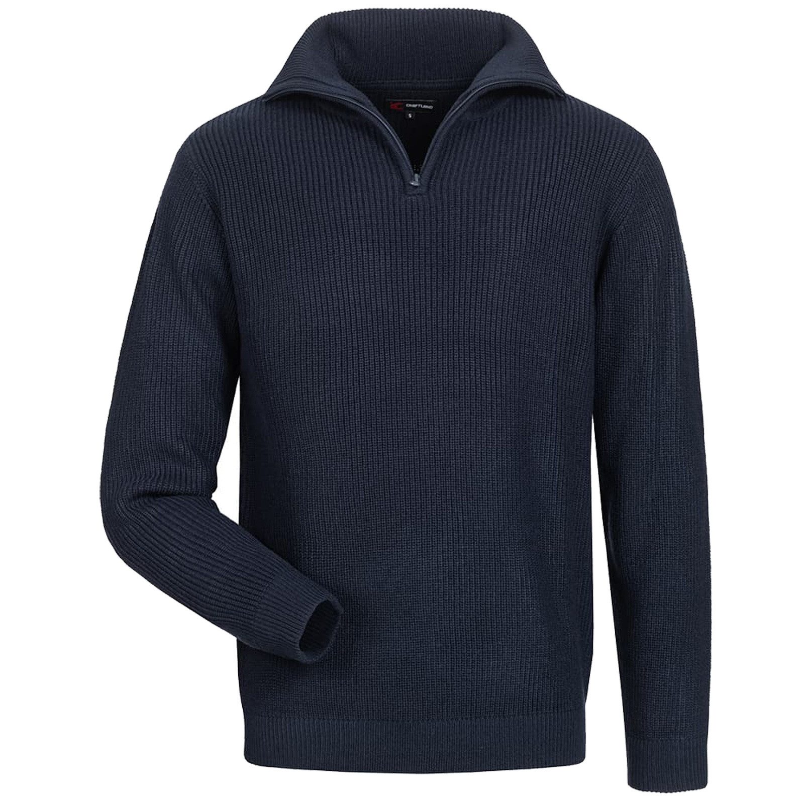 Gefertigt in 7' Gauge-Strick (Mittelstrick) bietet dieser Pullover nicht nur eine ansprechende Optik, sondern auch eine angenehme Haptik. Die Qualität des Stricks sorgt für eine langanhaltende Formbeständigkeit und einen hohen Tragekomfort. Der gerade Schnitt dieses Pullovers garantiert eine bequeme Passform für Männer und Frauen. Ein vielseitiges Kleidungsstück, das sowohl in der Freizeit als auch bei besonderen Anlässen getragen werden kann. Ärmel und Bund sind mit Strickbündchen versehen, die für einen optimalen Sitz sorgen und zugleich die Wärme speichern. Der Troyer-Kragen mit Reißverschluss ermöglicht eine individuelle Anpassung je nach Wetterbedingung oder persönlichem Stil. Dieser Troyer-Pullover lässt sich hervorragend mit verschiedenen Kleidungsstücken kombinieren, von Jeans bis zu Chinos, und passt sowohl zu einem lässigen als auch zu einem etwas eleganteren Look. Ein Must-have in jedem Kleiderschrank für Liebhaber des maritimen Stils.
