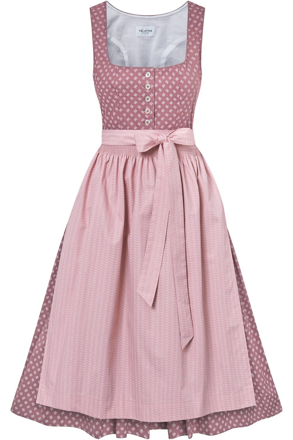 Das Midi-Dirndl Dorothea von Felicitas präsentiert sich als zeitloser Klassiker aus reiner Baumwolle, der Tragekomfort und traditionelle Eleganz auf hohem Niveau vereint. Das Oberteil und der Rock sind durch ein feines Blümchen-Jacquardmuster gekennzeichnet, das dem Dirndl eine romantische Note verleiht. Das Mieder zeichnet sich durch einen femininen Balkonett-Ausschnitt aus, der das Dekolleté stilvoll in Szene setzt. Die vordere Knopfleiste ist mit schimmernden Perlmuttknöpfen versehen, die dem Dirndl einen Hauch von Luxus verleihen. Praktische Rocktaschen, die unauffällig in der Seitennaht eingefügt sind, bieten Stauraum und unterstreichen die Funktionalität des Dirndls. Die farblich abgestimmte Schürze rundet das Gesamtbild harmonisch ab. Sie ist mit einem feinen Jacquardmuster versehen und kann mit einem eleganten Schleifenband gebunden werden. Dieses Midi-Dirndl Dorothea ist ein stilvolles Kleidungsstück, das Tradition und Moderne perfekt miteinander verbindet. Oberstoff: 100% Baumwolle; Futter: 100% Baumwolle