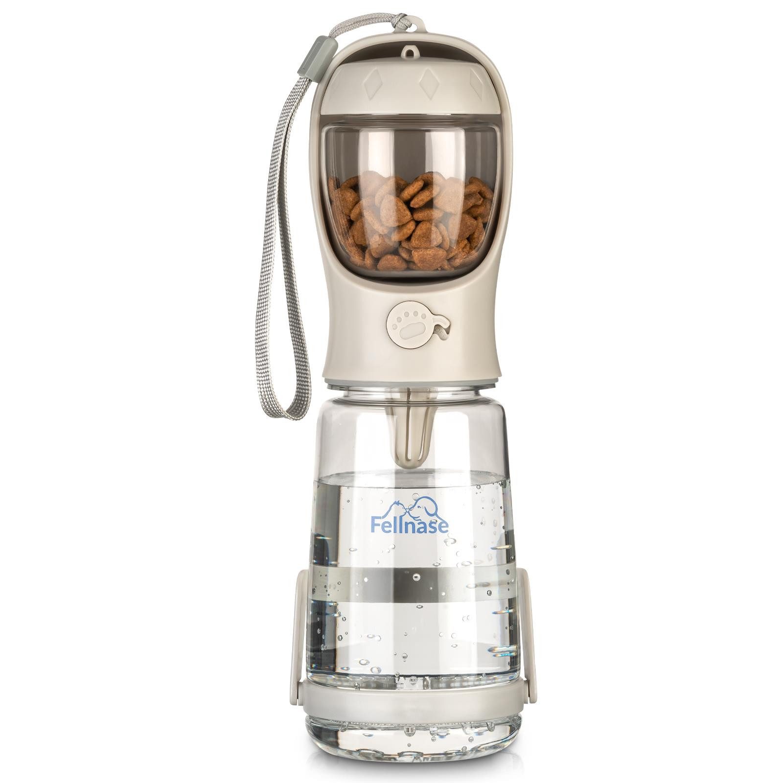 1x Original Fellnase Trinkflasche Hunde für unterwegs, 550 ml, plus 100 g Futterdose