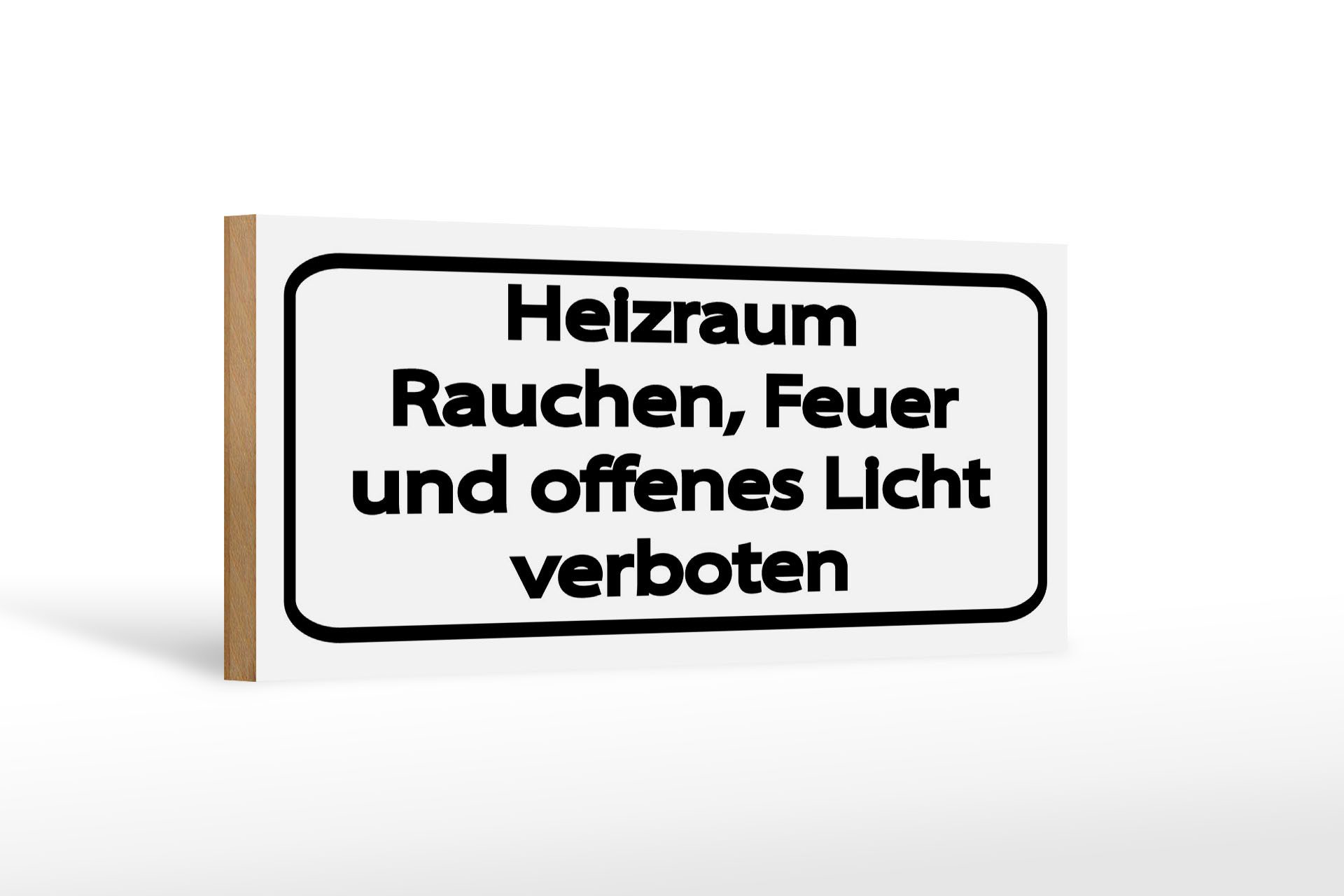 Femer GmbH Holzbild Hinweis 27x10 cm Heizraum Rauchen Feuer verboten weißes, (1 St), Glatte Holzfaserplatte (MDF), vorn beschichtet