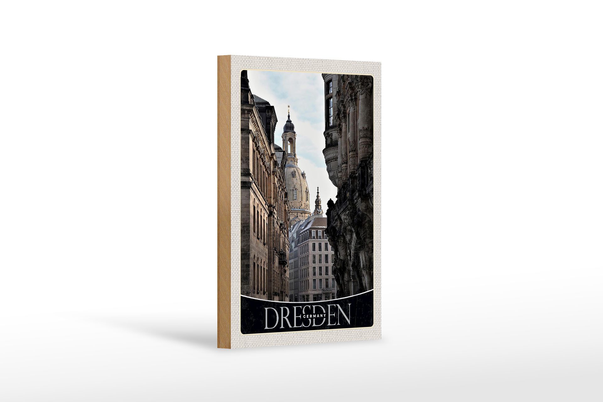Femer GmbH Holzbild Reise 12x18cm Dresden Deutschland Innenstadt Schild, (1 St), Glatte Holzfaserplatte (MDF), vorn beschichtet