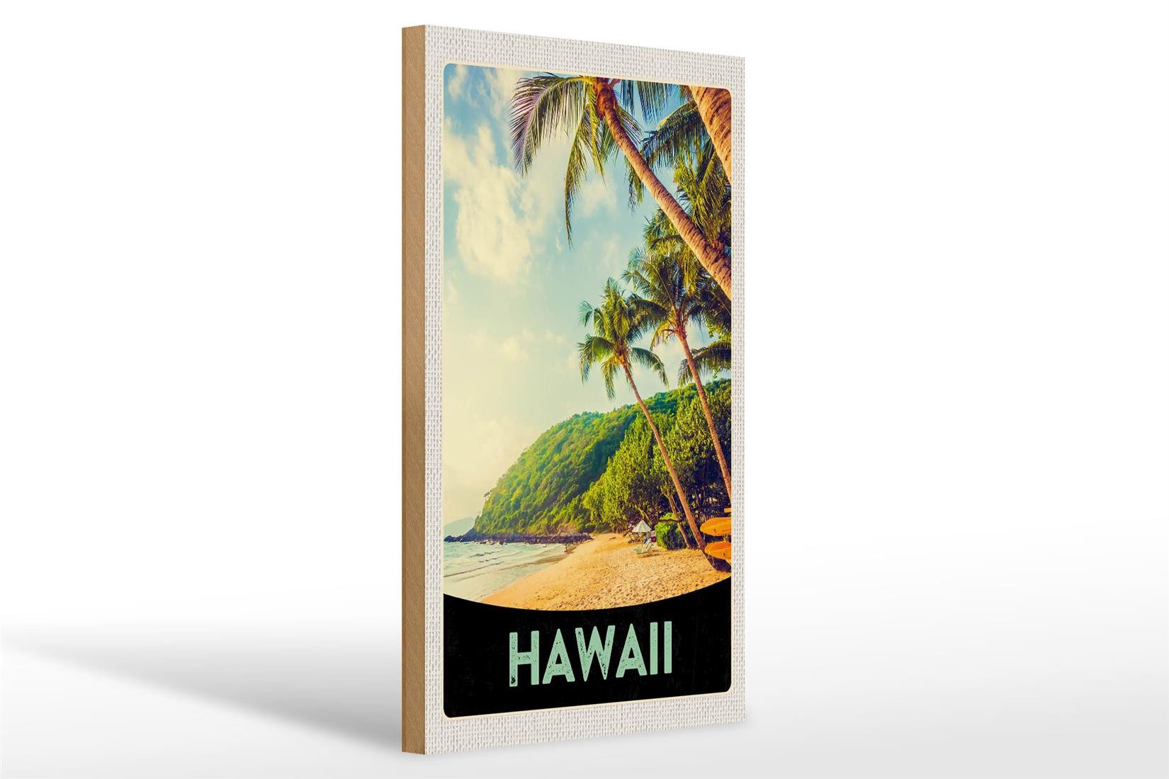Femer GmbH Holzbild Reise 20x30cm Hawaii Insel Strand Palmen Sonne, (1 St), Glatte Holzfaserplatte (MDF), vorn beschichtet