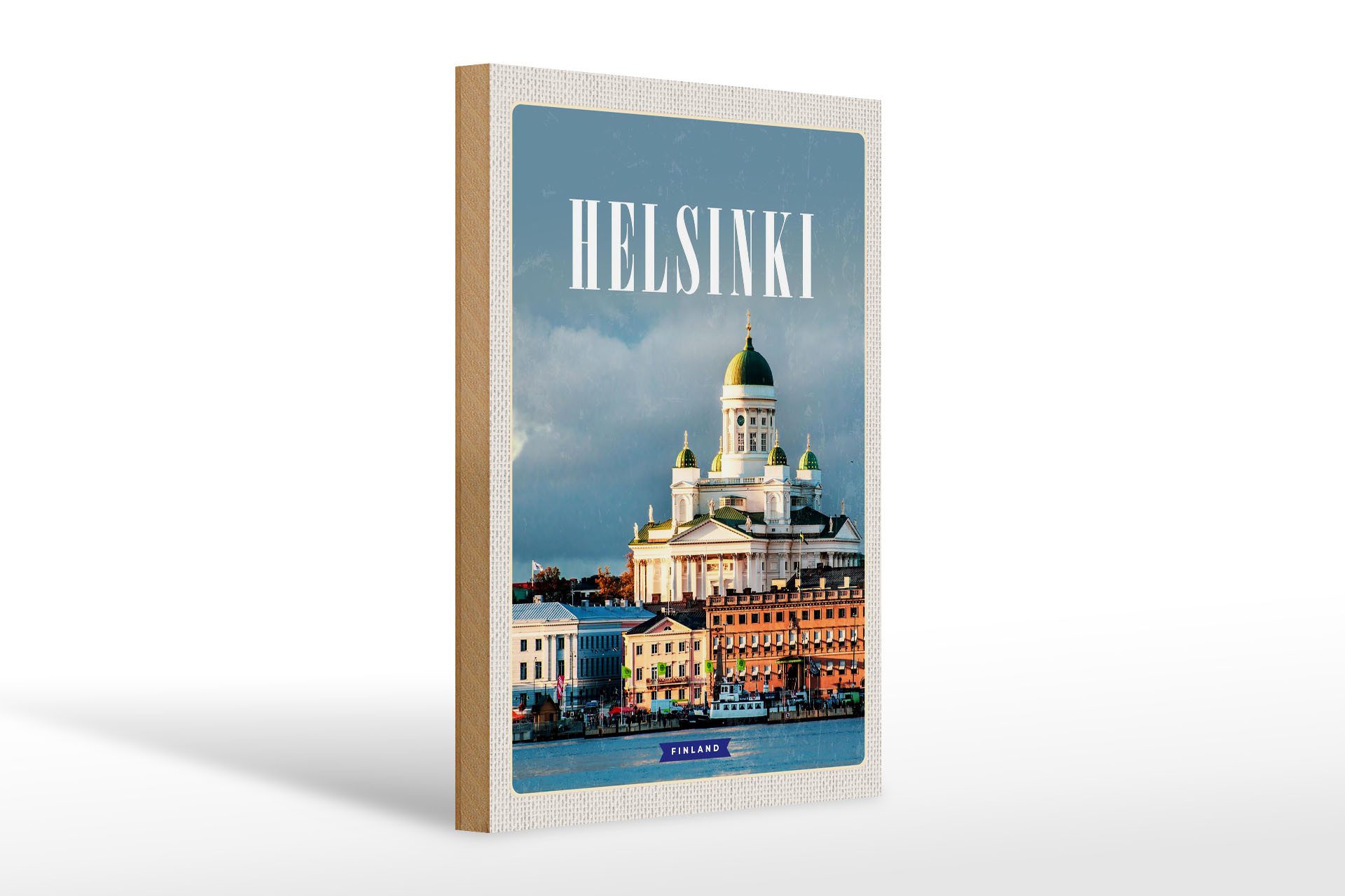 Femer GmbH Holzbild Reise 20x30cm Helsinki Finnland Meer Stadt Kirche, (1 St), Glatte Holzfaserplatte (MDF), vorn beschichtet
