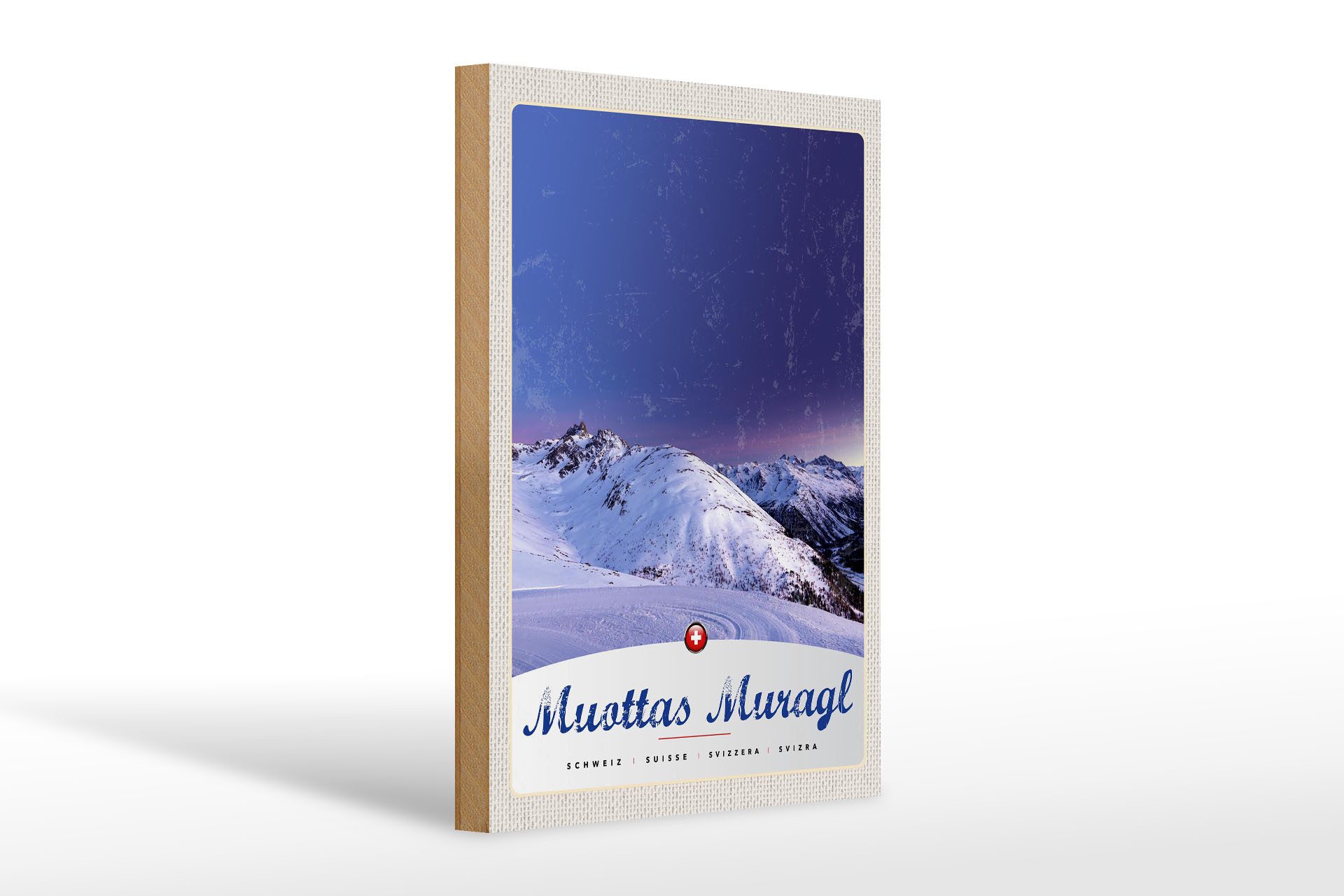 Holzbild Reise 20x30cm Muottas Muragl Schweiz Winter Schnee
