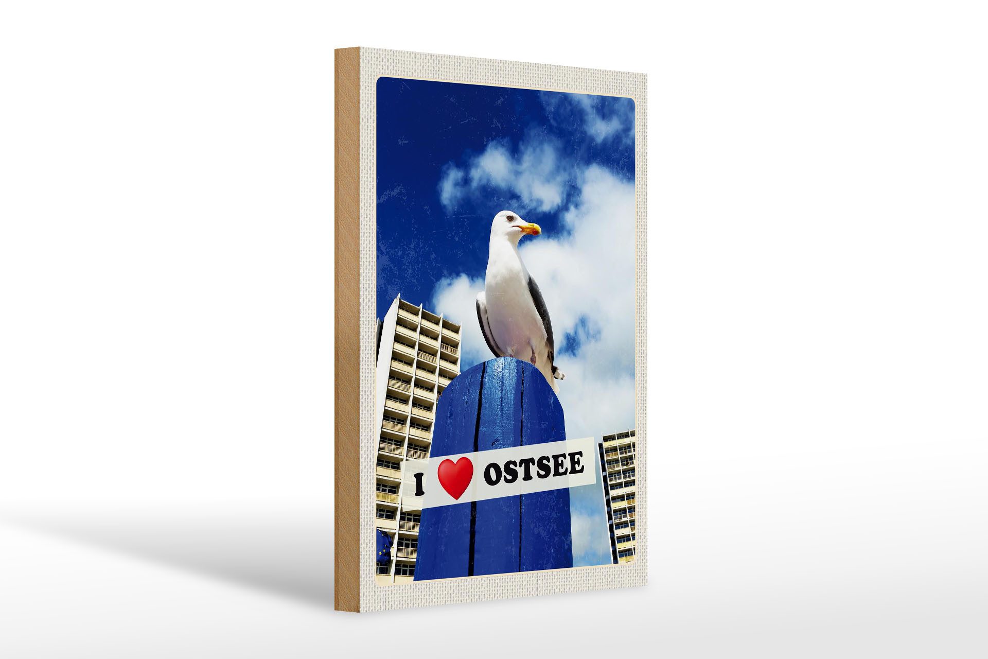 Femer GmbH Holzbild Reise 20x30cm Ostsee Möwen Hochhaus Strand Urlaub, (1 St), Glatte Holzfaserplatte (MDF), vorn beschichtet