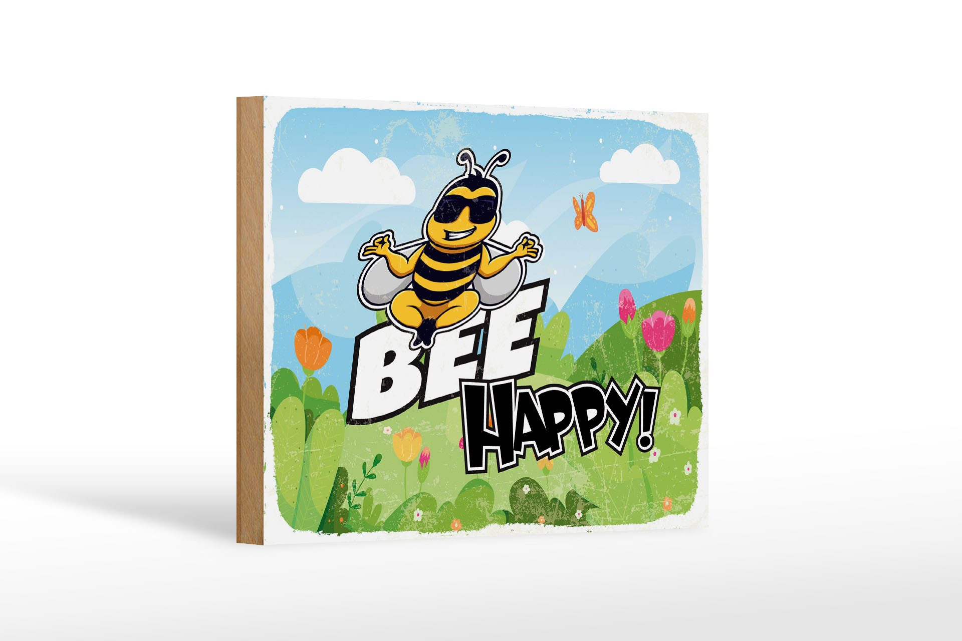 Femer GmbH Holzbild Spruch 20x30 cm Bee Happy Biene Wiese, (1 St), Glatte Holzfaserplatte (MDF), vorn beschichtet