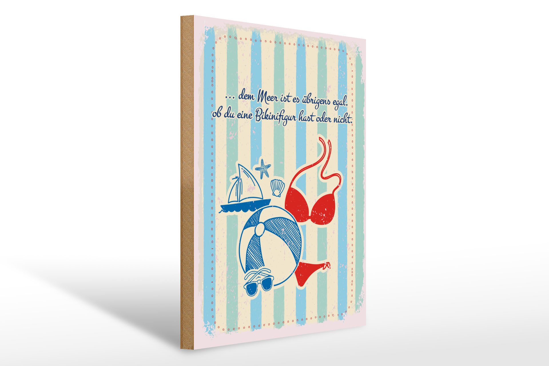 Femer GmbH Holzbild Spruch Meer Urlaub egal ob du Bikinifigur 30x40cm, Sprüche Zitate Lustiges (1 St), Glatte Holzfaserplatte (MDF), vorn beschichtet