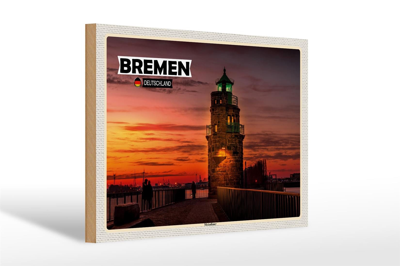 Femer GmbH Holzbild Städte Bremen Deutschland Molenfeuer 30x20cm, (1 St), Glatte Holzfaserplatte (MDF), vorn beschichtet