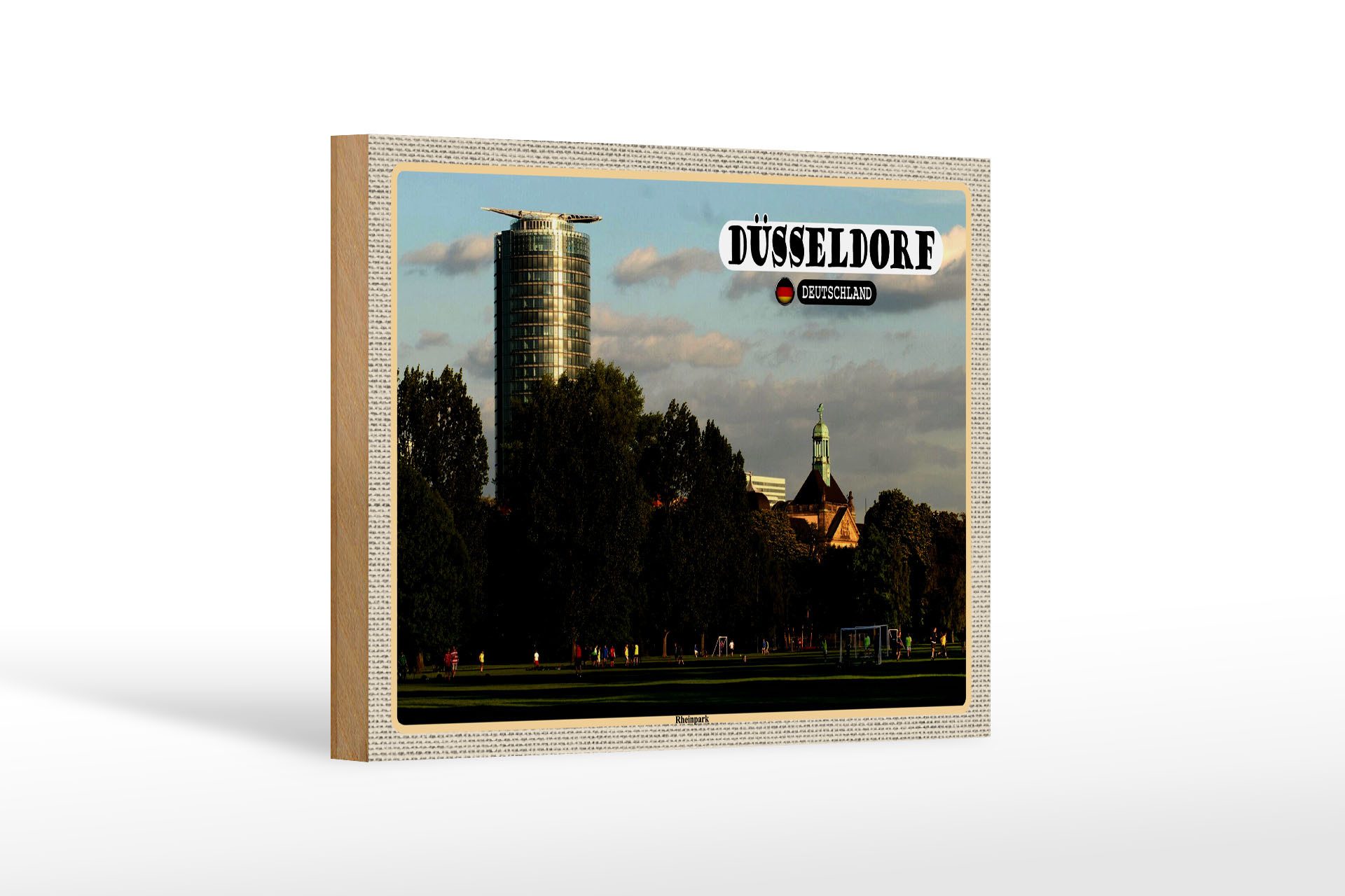 Holzbild Städte Düsseldorf Rheinpark Natur 18x12 cm