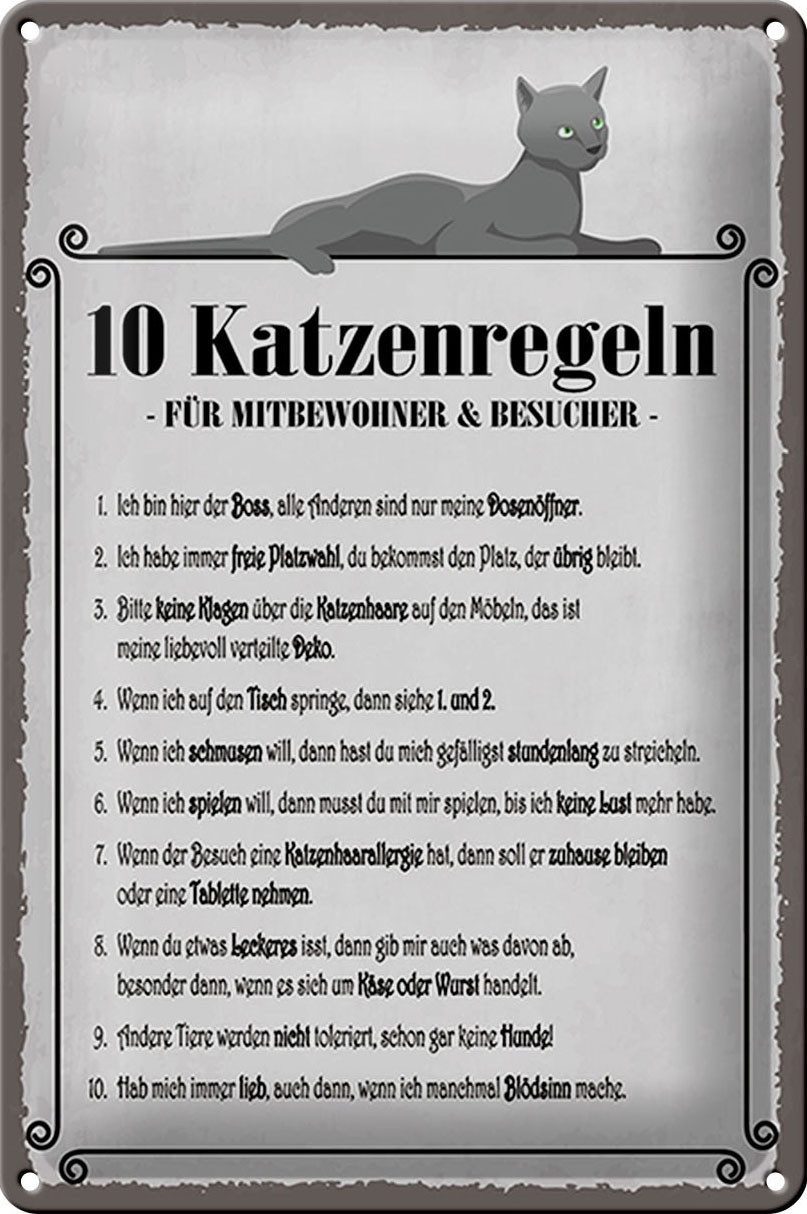 Metallschild Spruch 20x30cm 10 Katzenregeln ich bin der Boss