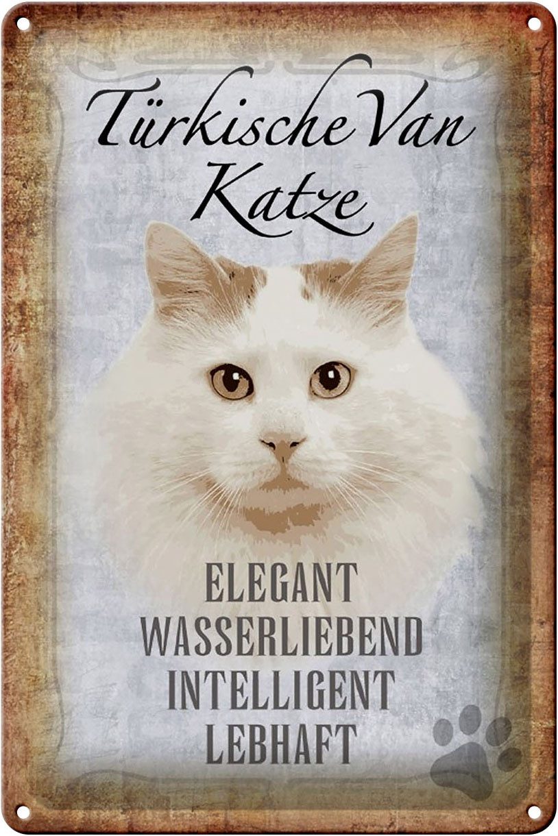 Femer GmbH Metallschild Spruch 20x30cm türkische Van Katze, (1 St), gewölbte Oberfläche, abgerundete Ecken, umgeschlagene Kanten