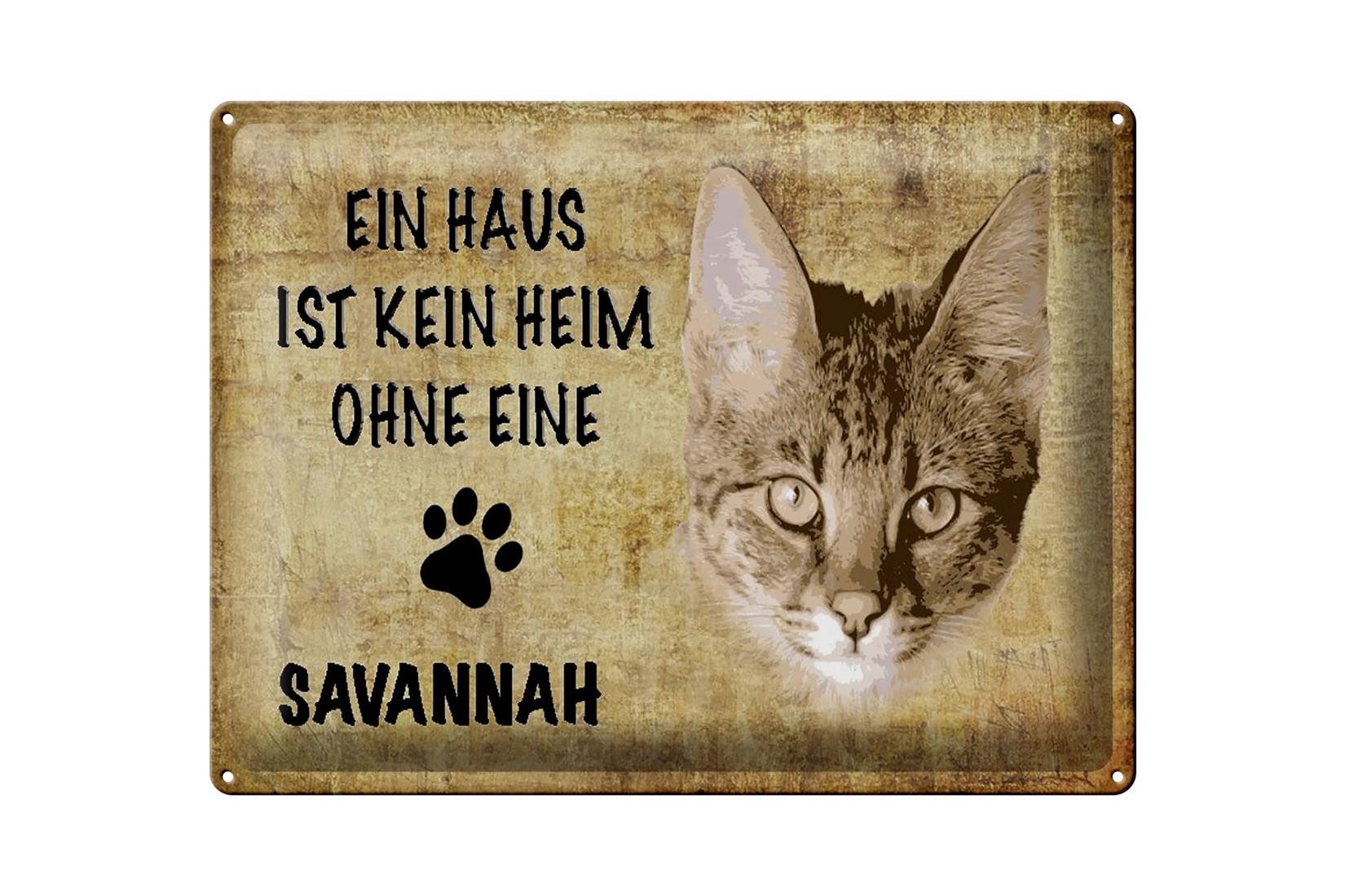 Femer GmbH Metallschild Spruch 40x30cm Savannah Katze ohne kein Heim, (1 St), gewölbte Oberfläche, abgerundete Ecken, umgeschlagene Kanten