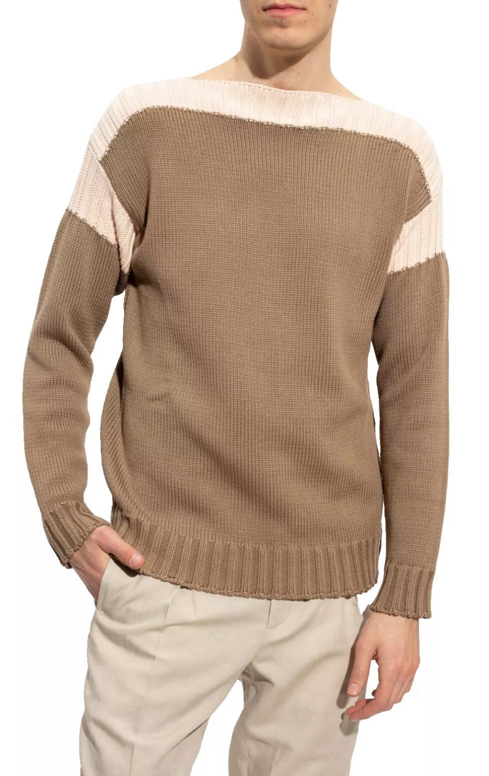 Dieser luxuriöse Fendi Pullover vereint einen klassischen Schnitt mit modernen Details. Der Pullover ist aus einer weichen Baumwoll-Kaschmir-Mischung gefertigt und bietet einen komfortablen, regulären Schnitt. Ein besonderes Highlight ist der FF-Intarsia-Einsatz am Saum sowie das zweifarbige Design. Mit einem eleganten Boot-Ausschnitt und zartem, rosa Rippenstrick-Detail an Passe und Armansätzen verleiht dieser Pullover Ihrem Look einen besonderen Akzent.