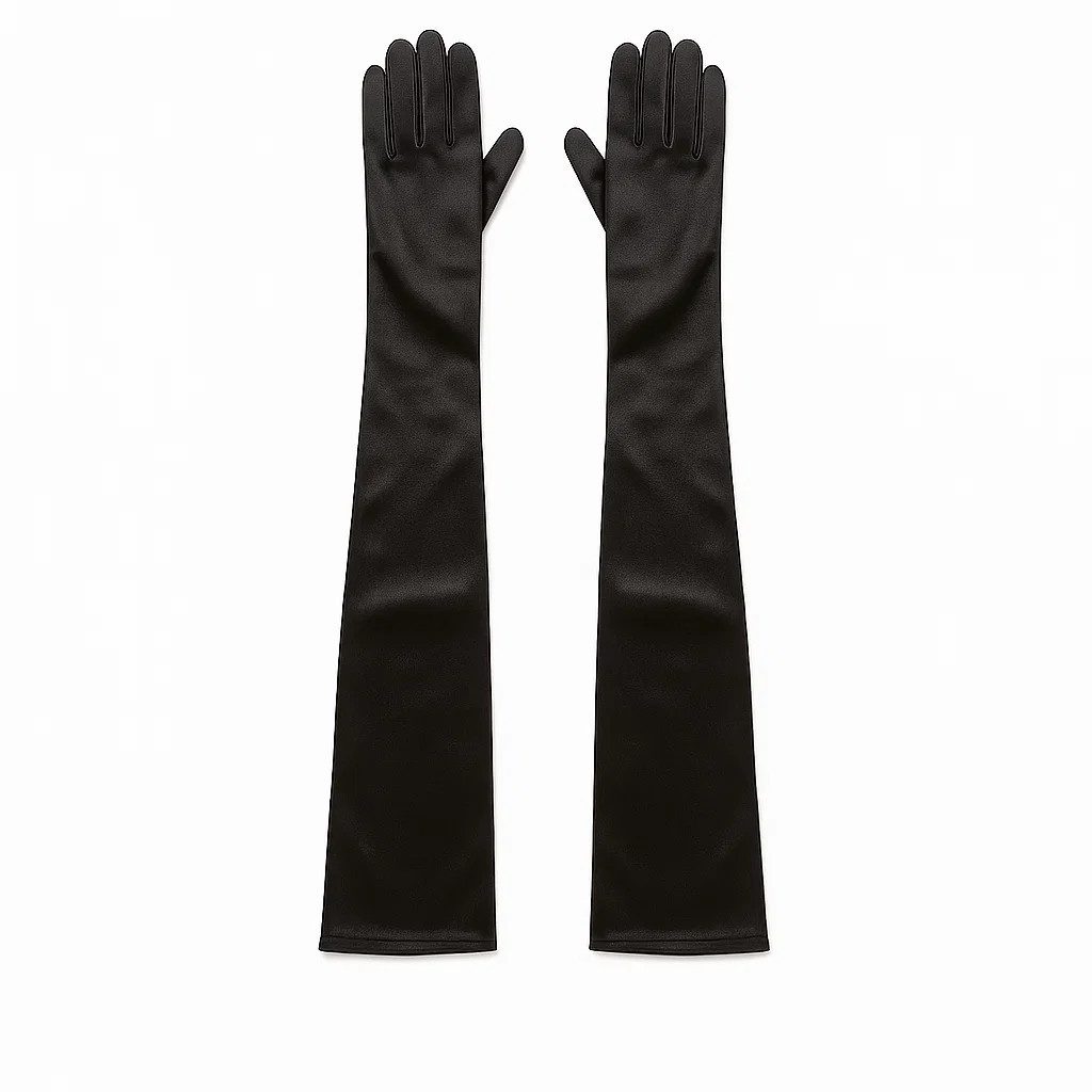 Überlange Opernhandschuhe bis über den Ellbogen, glänzende Satin-Optik für glamouröse und mystische Auftritte.