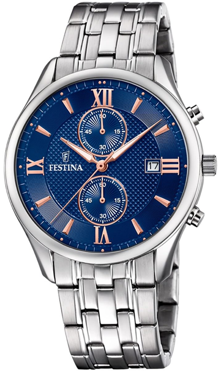 Seit mehr als 100 Jahren sind Uhren weltweit durch den Namen Festina, lat. -Beeil dich-, gekennzeichnet. Die erfolgreiche Uhrenmarke wurde 1902 in der Schweiz gegründet, 1984 von dem Spanier Miguel Rodriguez übernommen und hat seither ihren Hauptsitz in Barcelona. Festina Uhren sind ausgezeichnet durch ihren hohen Qualitätsanspruch und solide Preise. Die namenhafte Firma verwendet ausschließlich hochwertige japanische oder Schweizer Uhrwerke.