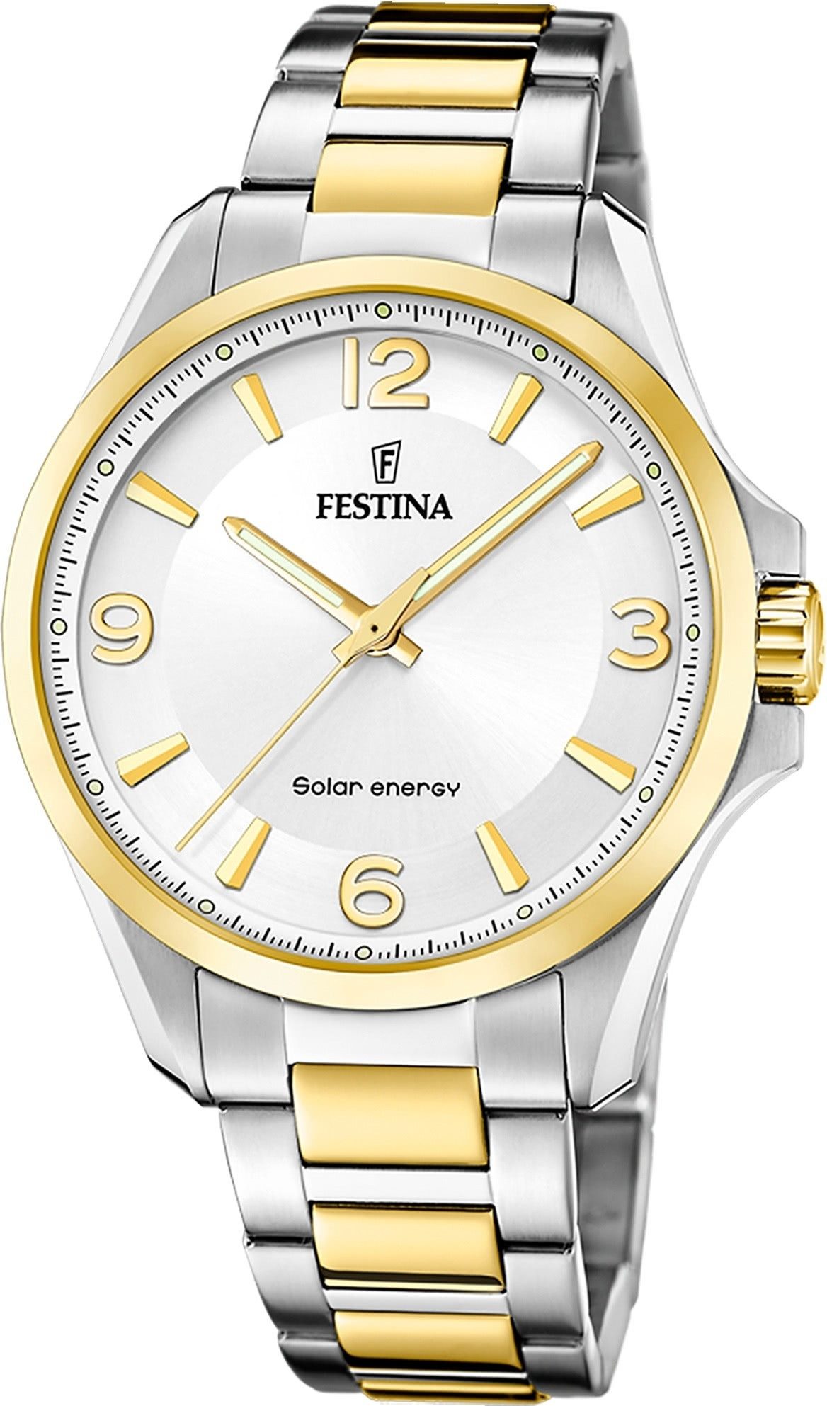 Die Luxus Uhr der Marke Festina hat ein schönes Armband aus Edelstahl in silber gold mit Faltschließe. Eine Uhr aus der Festina Solar Energy Kollektion für Herren in der Gehäusefarbe silber . Die Analoguhr mit Mineralglas hat ein Zifferblatt in der Farbe silber. Die Form der Uhr ist rund und das Gehäuse ist groß ca. 42mm.