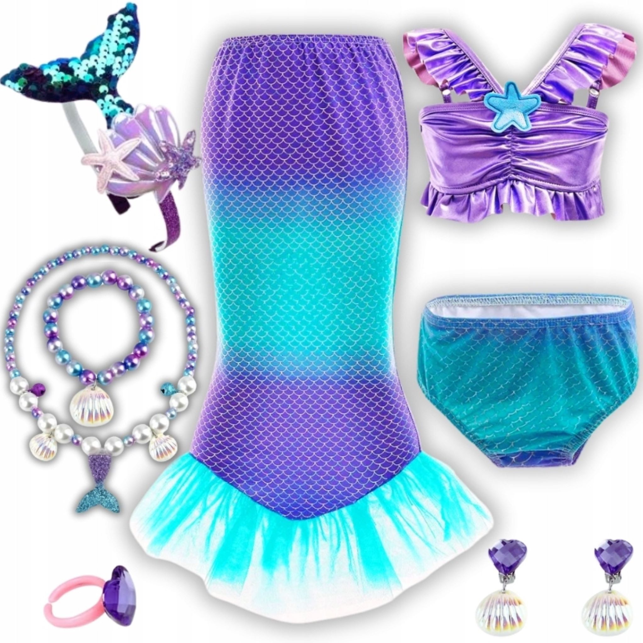 Entdecke den Zauber des Meeres mit unserem 8in1 Meerjungfrau Arielka Kostüm für Mädchen! Perfekt für Strand, Pool und fantasievolles Spiel. Einzigartiges Design mit bunten Farben und Schuppenmuster. Elastische Bündchen für bequemen Sitz. Enthält Halskette, Armband, Ohrringe und Haarband mit Muscheldesign. Ideales Geschenk für kleine Meerjungfrauen-Fans!