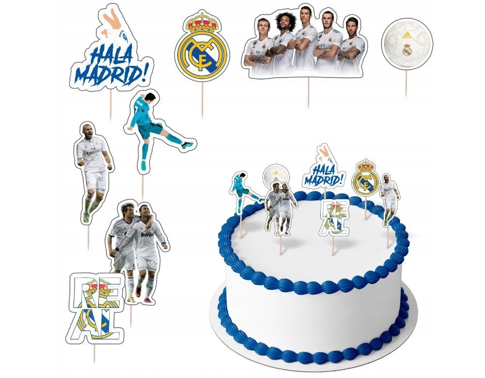Willkommen bei unserer Auktion! Wir bieten Ihnen einzigartige Papier-Topper an, die jede Kinderparty aufpeppen und den Kleinen sowie jungen Eltern viel Freude bereiten werden. Dieses Set enthält ganze 8 Figuren der beliebten REAL MADRID-Serie! REAL MADRID Set 8 Stück, Topper auf eine Torte in Form eines REAL MADRID-Zeichens REAL MADRID-Motiv Topper Die Dekoration ist aus Kunststoff gefertigt. Sieht toll aus und hält die Torte fest. - Menge: 8 Stück, - Material: Papier,Holz - dekoratives Produkt, ungenießbar - schöne glänzende Farbe, - sofortiger Versand aus Deutschland (beim Kauf bis 16:00 Uhr erfolgt der Versand am gleichen Tag) Denken Sie daran, dass dieser REAL MADRID-Topper die ideale Ergänzung für Geburtstagstorten und Cupcakes für Kinder ist. Er erleichtert die Dekoration, fügt Farbe und Freude hinzu und macht jede Party zu etwas Besonderem!