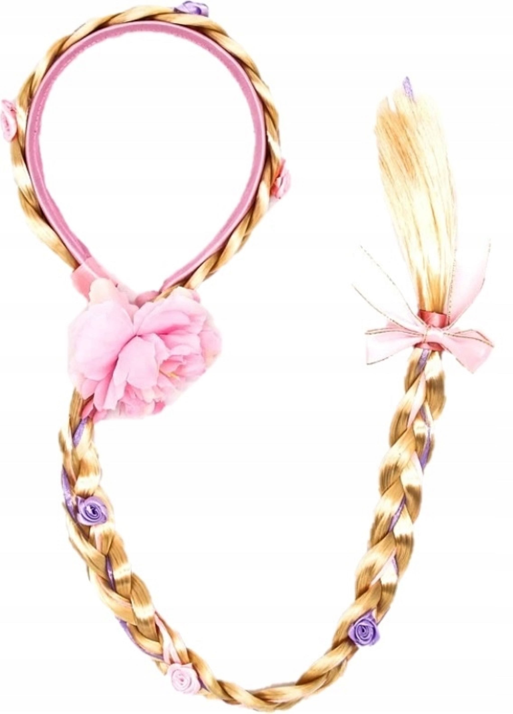 Diese universelle Haarreif mit Zopf ist das perfekte Accessoire für den täglichen Look oder Geburtstagsfeiern im Rapunzel-Stil. Der Zopf ist sorgfältig geflochten, mit einem Band durchzogen und mit Rosen und einer großen Blume verziert. Das Ende des Zopfes wird von einer wunderschönen Schleife gekrönt. Ideal als Geschenk, für Karneval, Geburtstage oder andere besondere Anlässe.