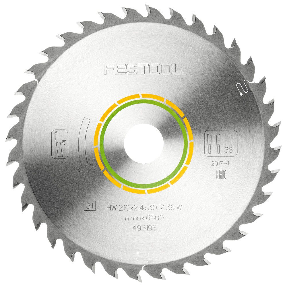 Durchmesser: 210 mm Schnittbreite: 2,4 mm Bohrungs-Durchm. Ø: 30,0 mm Zähnezahl: 36 Zahnform: W Spanwinkel: 15° Gewicht: 613 g