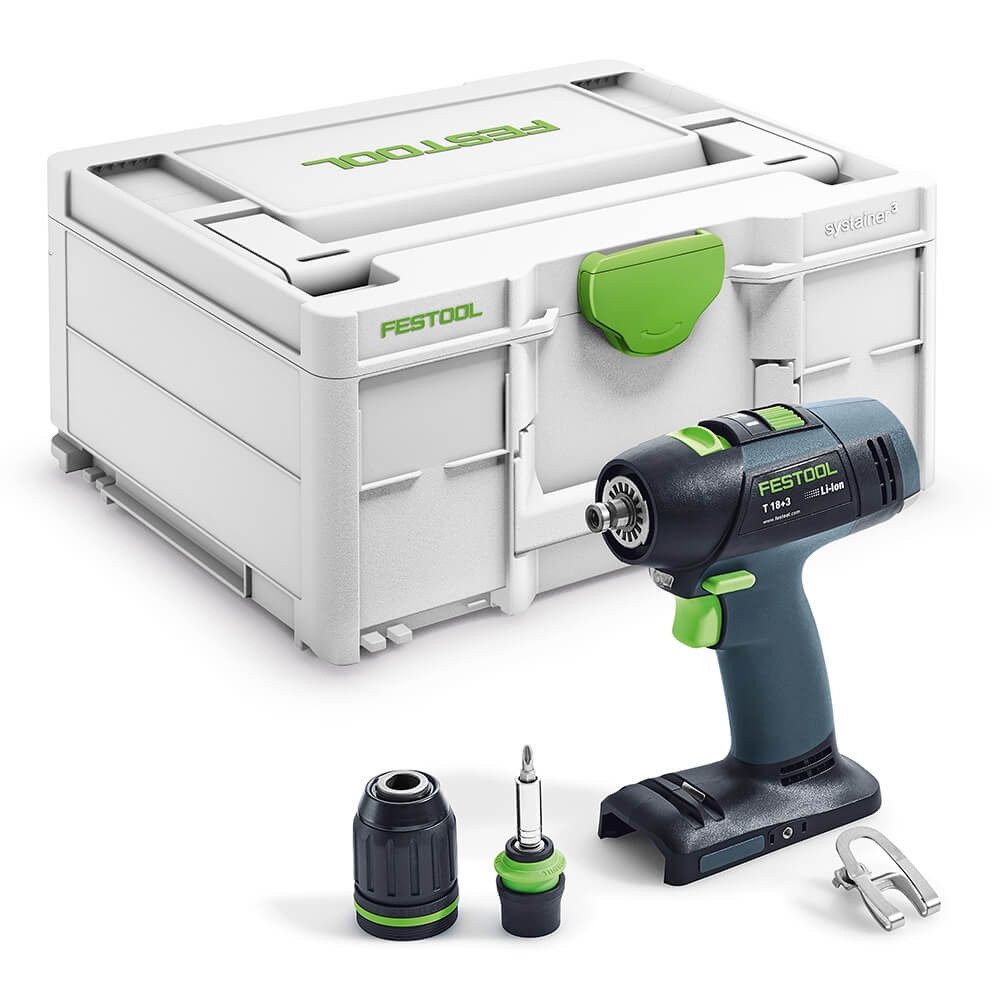 Dein neuer Akku-Bohrschrauber ist von Festool und für Wechseln von Bohren auf Schrauben bestens geeignet. Maximale Flexibilität, intelligente Technik und kompromisslose Qualität - der Festool Akku-Bohrschrauber T 18+3 ist die perfekte Wahl für alle, die beim Bohren und Schrauben höchste Präzision und Vielseitigkeit erwarten. Ausgestattet mit vollelektronischer Drehmomenteinstellung, dem CENTROTEC Schnellwechselsystem, Winkel- und Exzentervorsatz sowie einem Tiefenanschlag, meistert er jede Anwendung - auch an schwer zugänglichen Stellen.