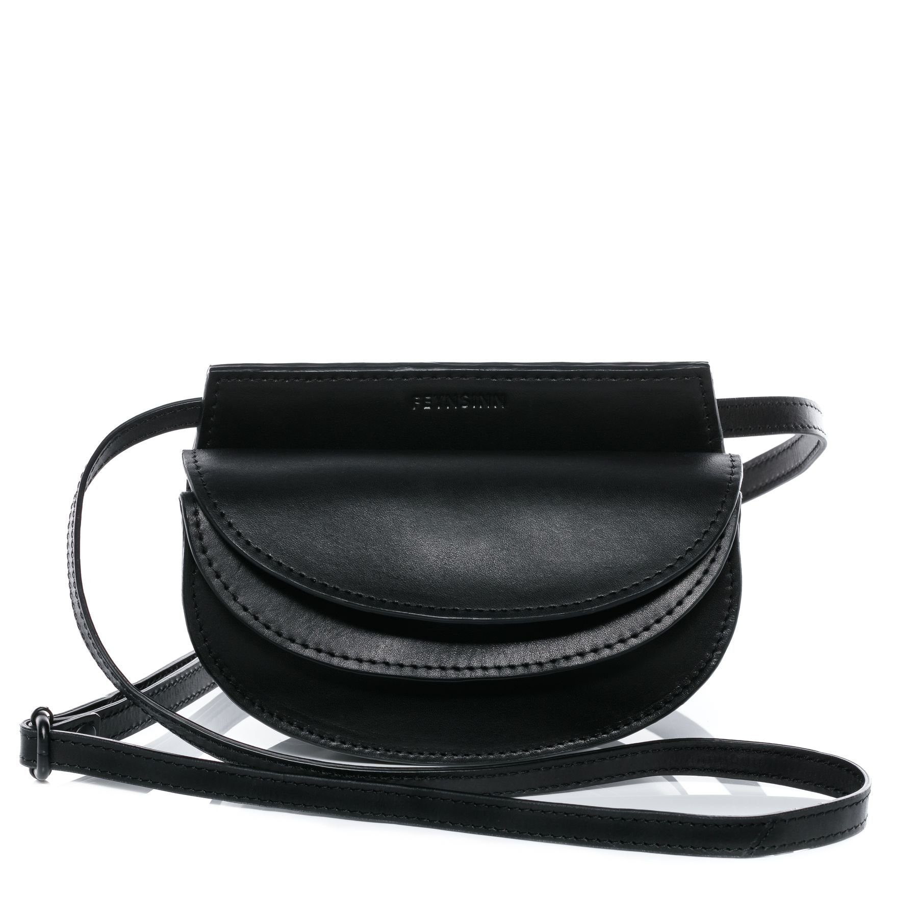 Handtasche echt Leder Damen, Crossbody Bag mit Schultergurt schwarz