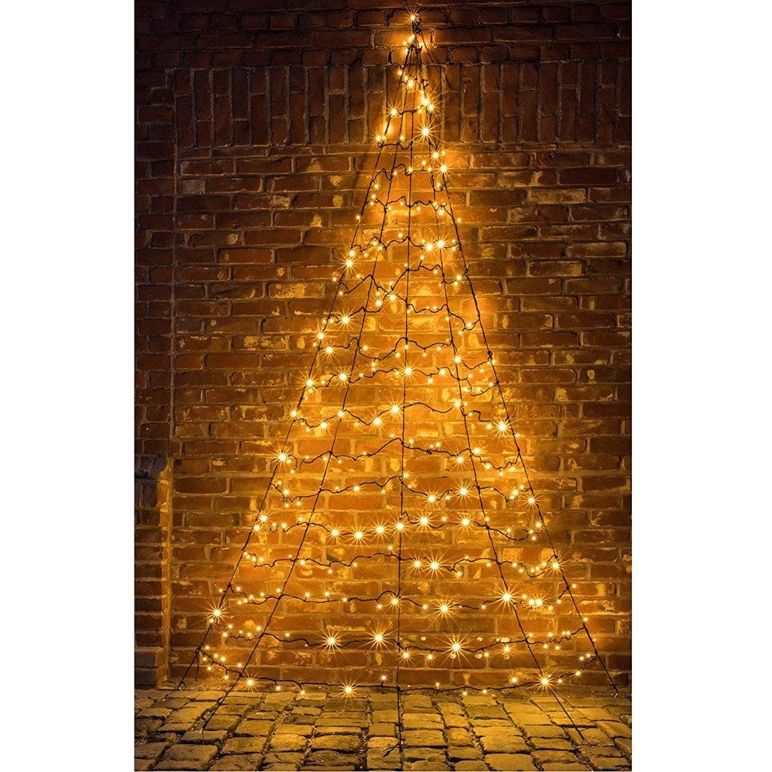Galaxy LED-Wandtannenbaum 300 cm, Breite ca. 150cm mit 260 warm weißen LED, gewebeverstärkte reißfeste Lichterschnüre, mit horizontalen angeordneten LED, 5m Kabelzuleitung, IP44 Außenadapter, inkl. Haken zum Aufhängen und Erdnägeln.