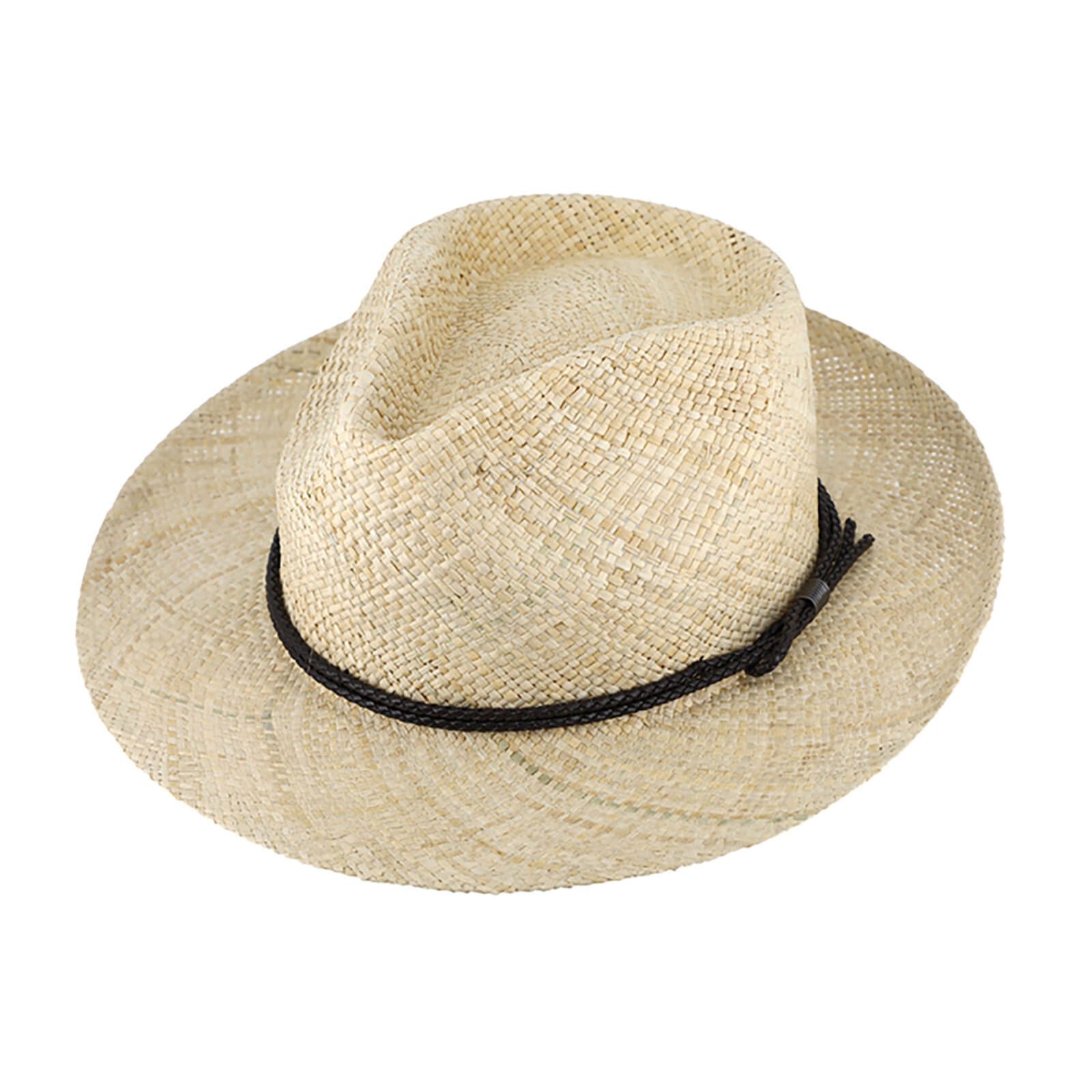 Strohhut Strohhut Fedora mit doppeltem PU-Lederband Natur