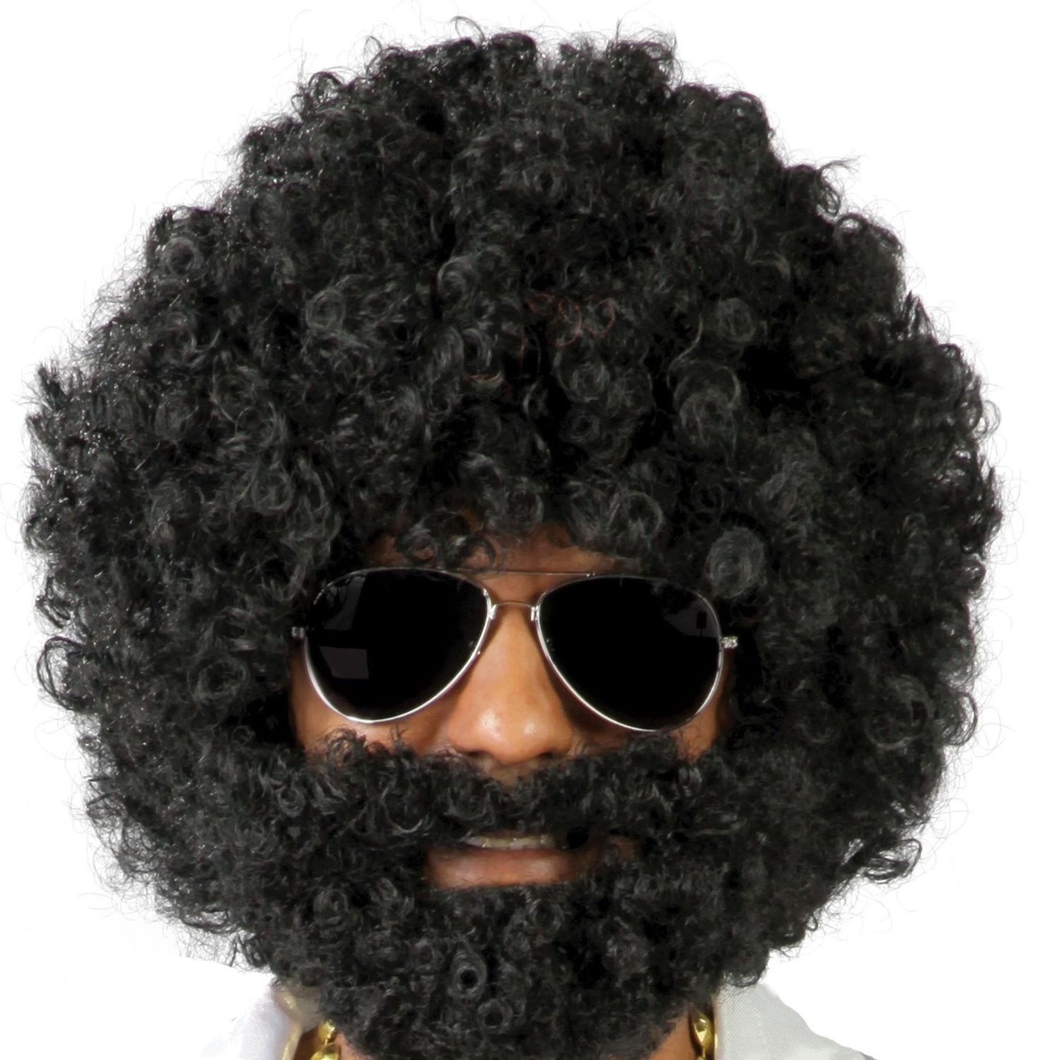 Kultiges Set aus schwarzer Afro-Perücke und passendem Bart - perfekt für 70er-Jahre- und Disco-Mottopartys.