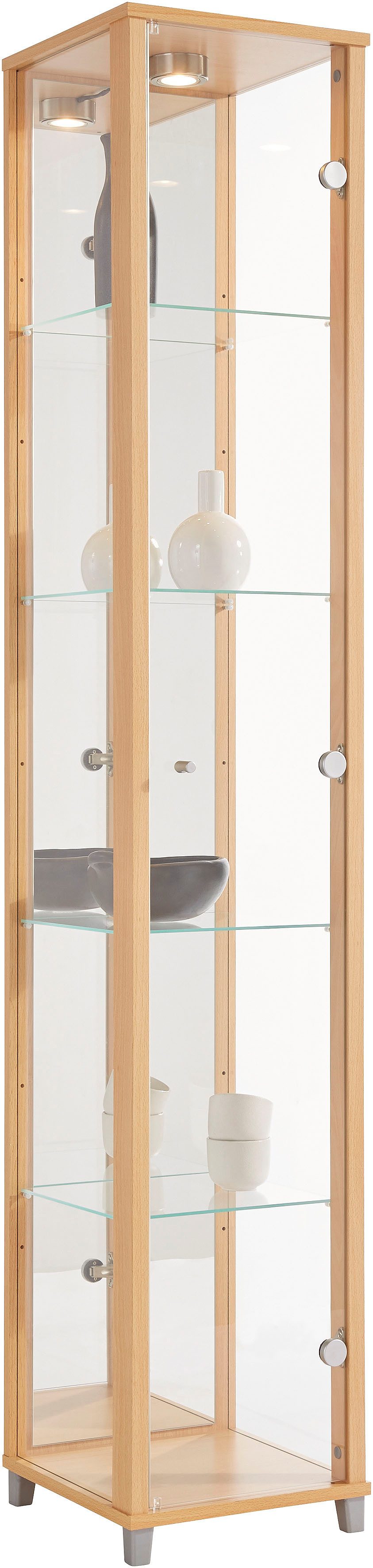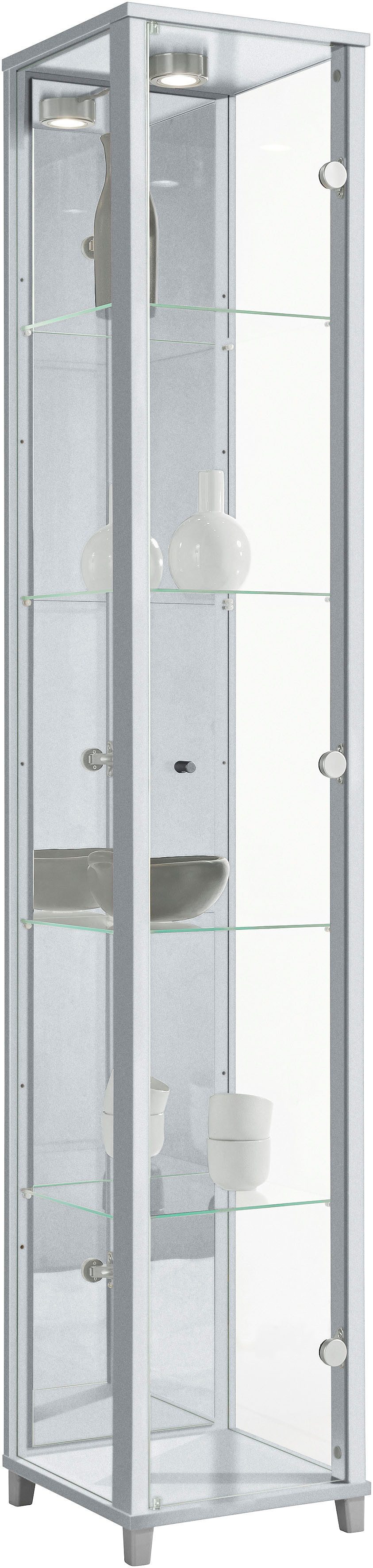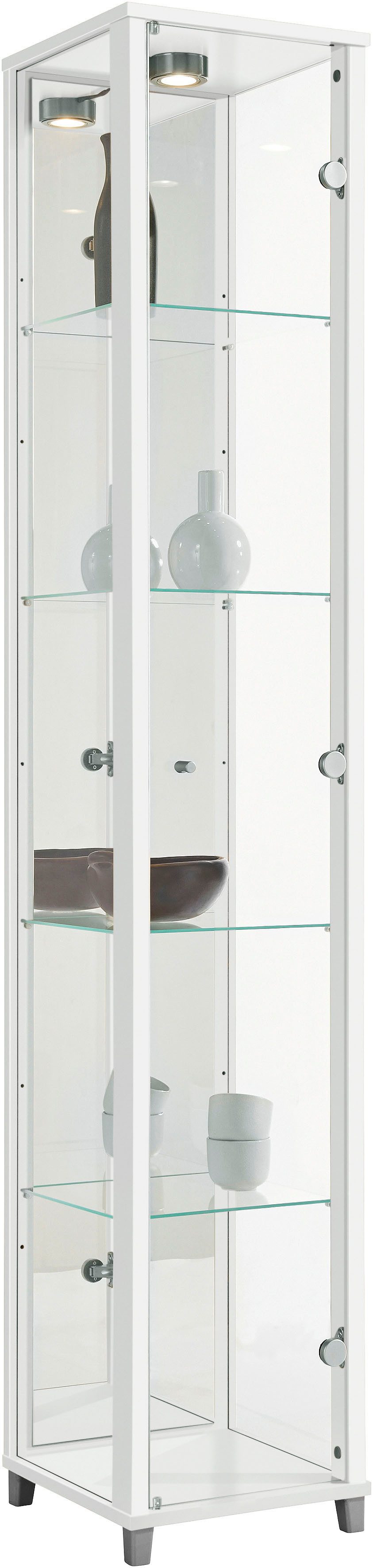 Wissenswertes | Besondere Plätze für besondere Schätze: Dekorative Vitrine zum Präsentieren von persönlichen Schätzen oder für Sammlerstücke. Durch die Spiegelrückwand und LED-Beleuchtung werden Ihre Schätze besonders gut in Szene gesetzt. Die vier verstellbaren Glasböden, die zwei Glasseiten und die Glastür sind zum Schutz aus ESG-Sicherheitsglas gefertigt. Mit den Maßen (B/T/H): 32/33/172 cm eignet sich die Vitrine optimal für kleine Räume oder Nischen. Die Vitrine gibt es in verschiedenen Farben. In folgenden Farben erhältlich: