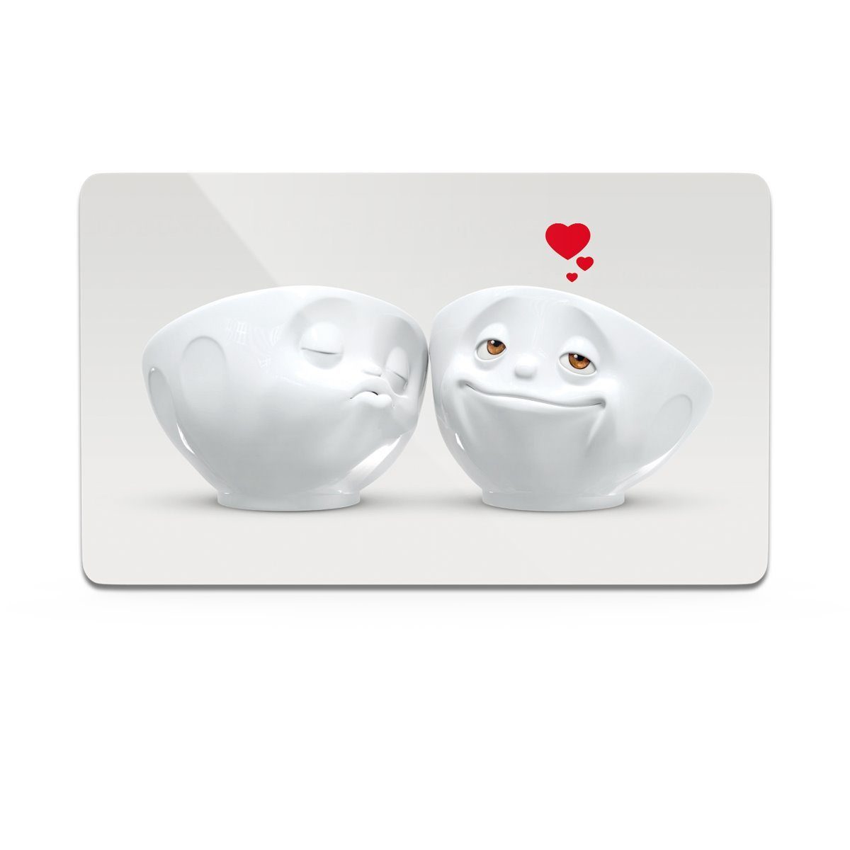 Das Süße Leben lässt sich mit diesem tollen Schneidbrett Motiv schon ab dem Frühstück genießen. Die 2 Fifty-Eight Schalen mit dem Gesicht haben sich diesmal ganz lieb. Der hochwertig glänzende Farbdruck auf Melaminharzplatte ist wasser- und schnittecht. Ergänzen Sie Ihr Меню mit diesem neuen Schneidbrett-Motiv.