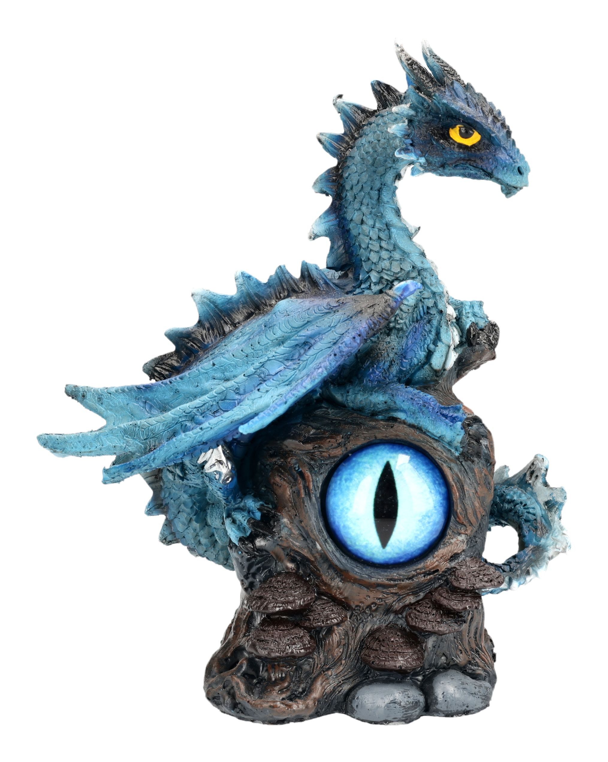Erlebe mit diesem blauen Wächterdrachen eine faszinierende Fantasiewelt aus Magie und Schutz. Auf leuchtend blauem Drachenauge sitzend wacht er aufmerksam über jeden Raum. Die Fantasy Figur besitzt höchste Detailtreue durch liebevoll handbemaltes Kunststein‑Polyresin. Jede Schuppe wirkt lebendig und mystisch.