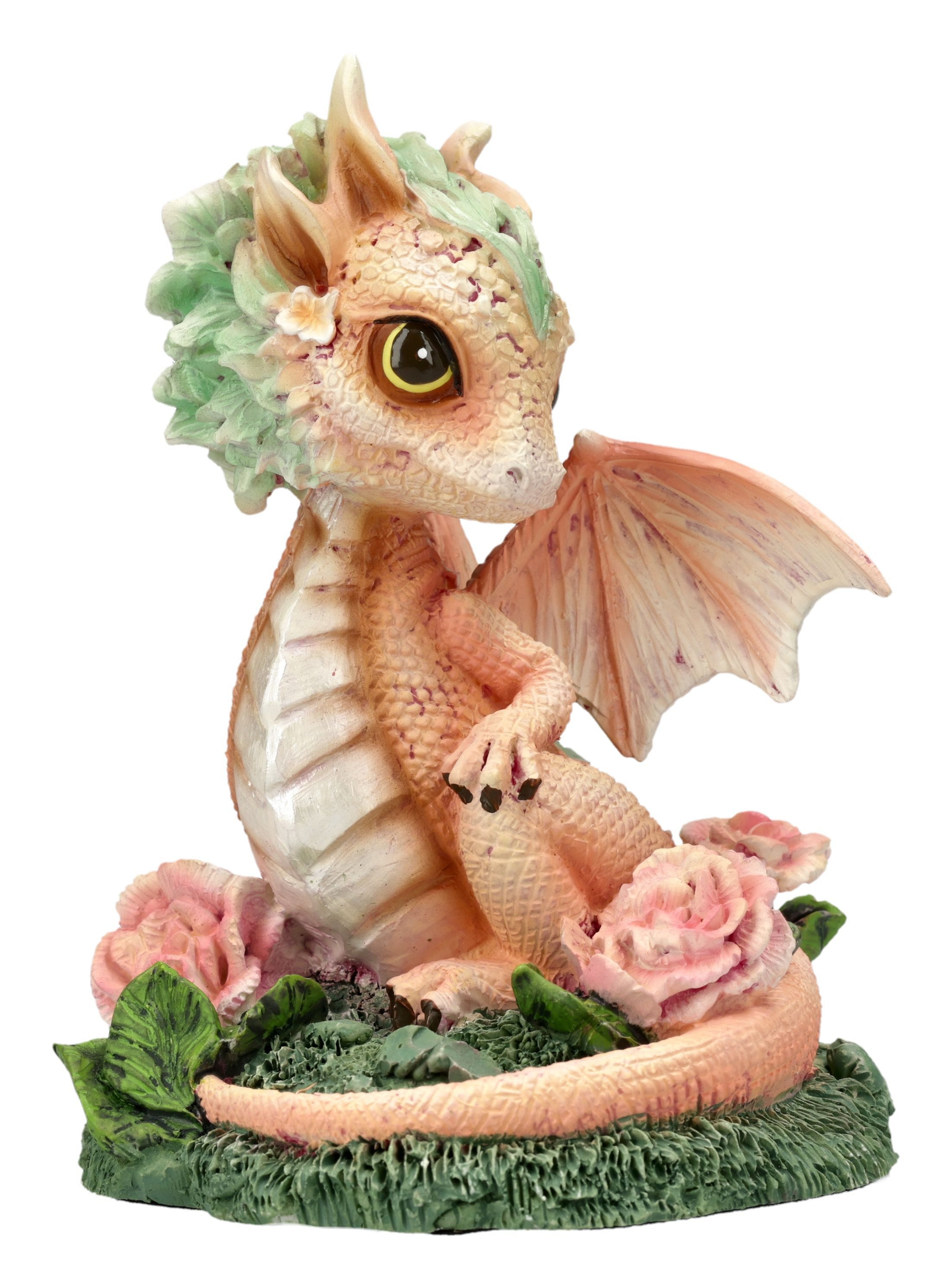 Dieser kleine Drache hat sich tief zwischen Nelkenblüten versteckt und genießt den betörenden Duft der Blumen. Mit seiner liebevoll handbemalten Gestaltung und den filigranen Details wirkt er beinahe lebendig. Die Drachen Figur ist aus hochwertigem Kunststein (Polyresin) gefertigt und verzaubert durch ihre detailreiche Fantasy-Optik.