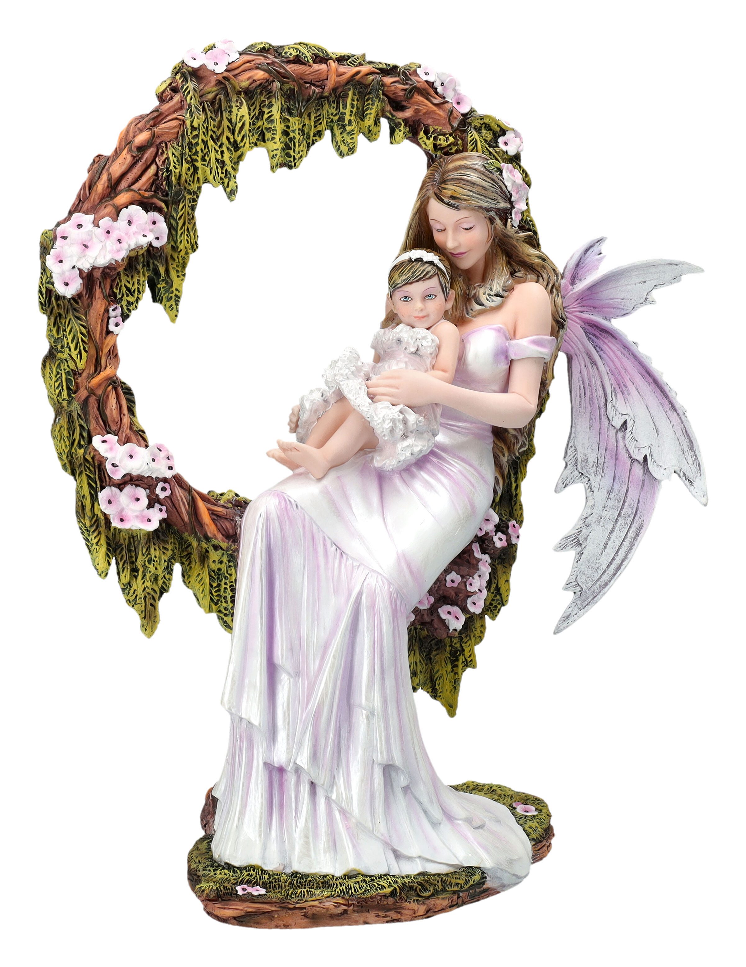 Diese zauberhafte Elfen Figur zeigt eine liebevolle Mutter mit ihrer Tochter in einer filigranen Schaukel aus Blütenranken. Die handbemalte Statue aus hochwertigem Kunststein (Polyresin) besticht durch detailreiche Flügel und sanfte Rosatöne. Mit einer Höhe von 33,5 cm wird sie zum Blickfang für jede Fantasy-Deko. Ein ideales Geschenk für Elfen-Fans, Sammler und Mütter mit ihren Töchtern.