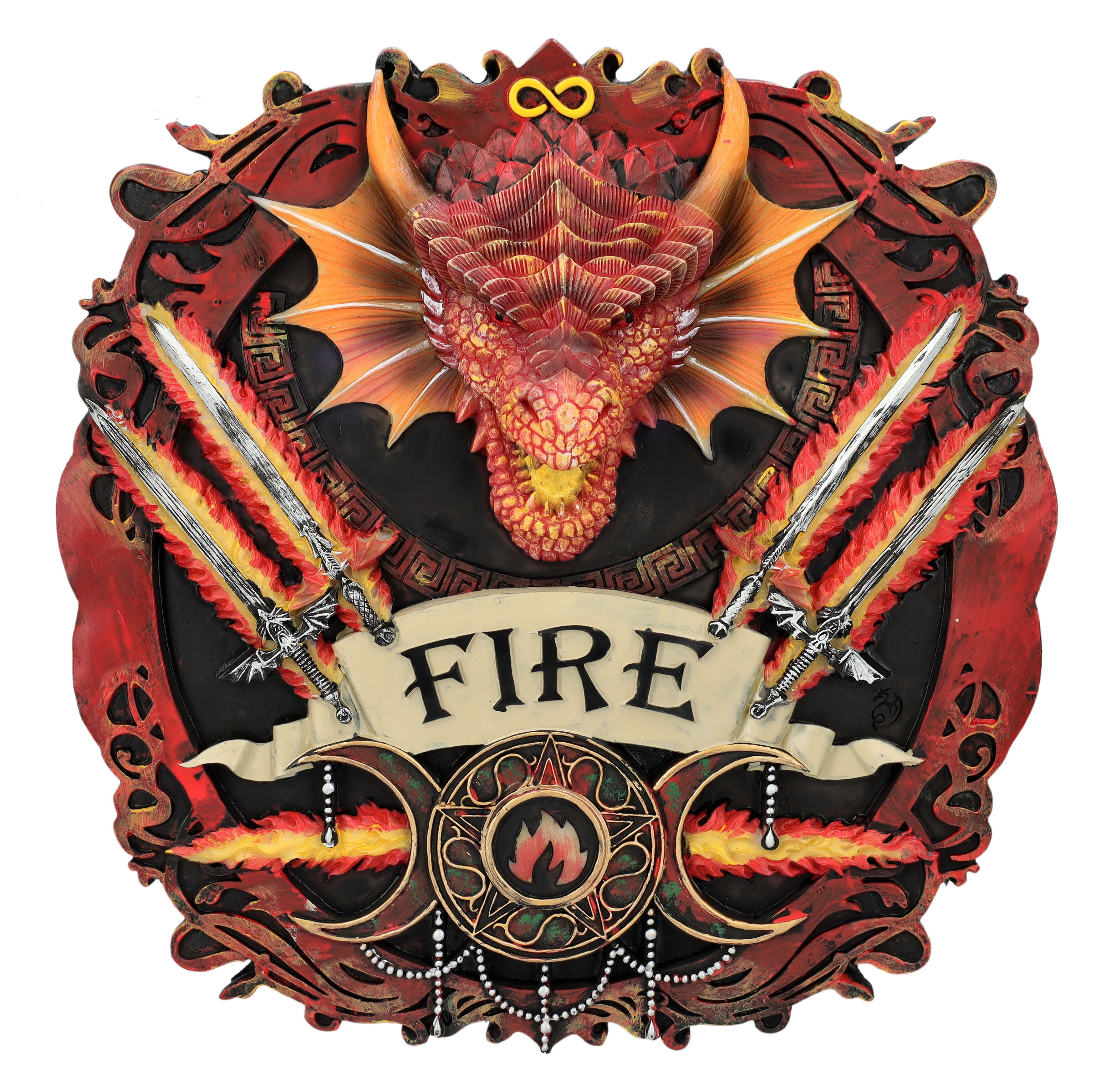 Motiv | Wandrelief, Drache, Feuer, Schwert, Dreifach-Mond |