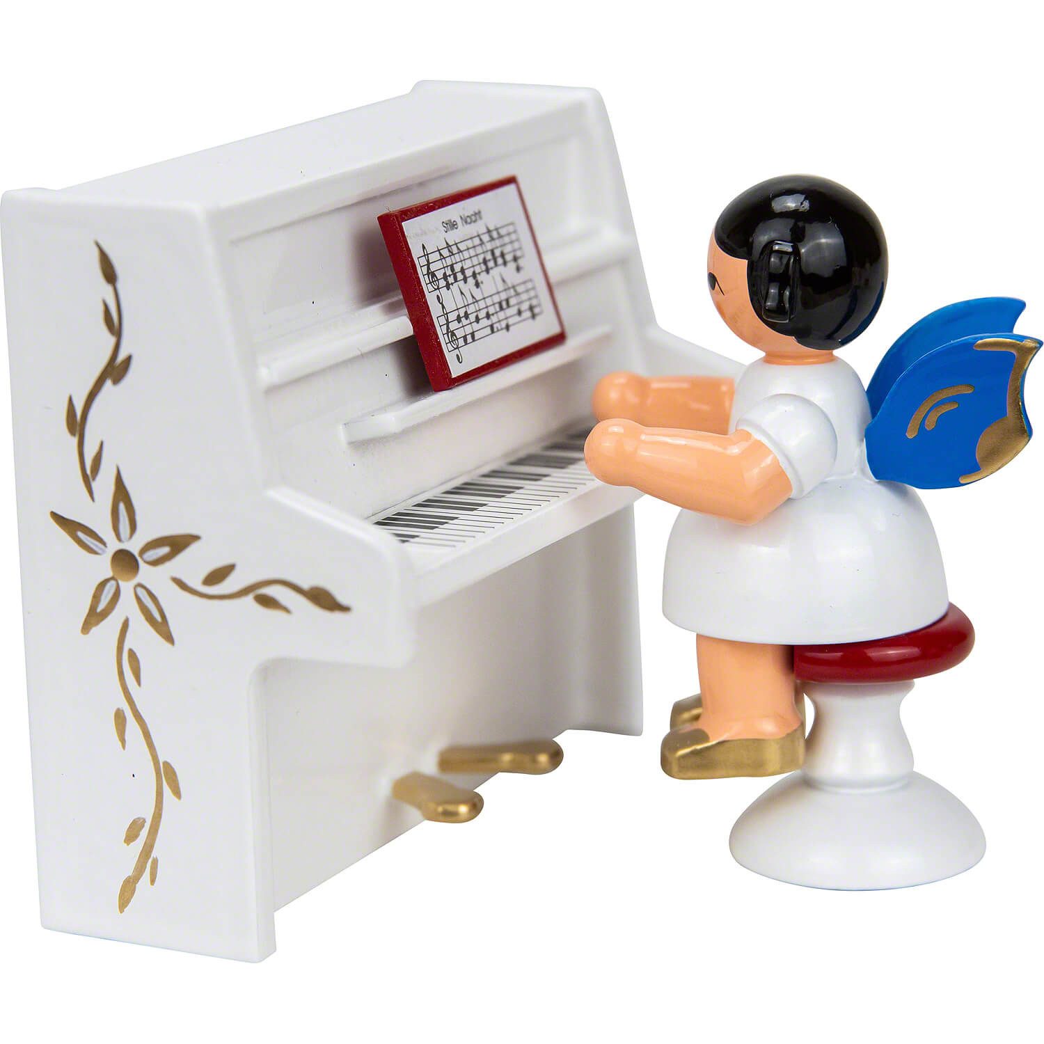 Dekofigur Engel auf Hocker am weißen Klavier, blaue Flügel (6cm) von Kunstgewerb