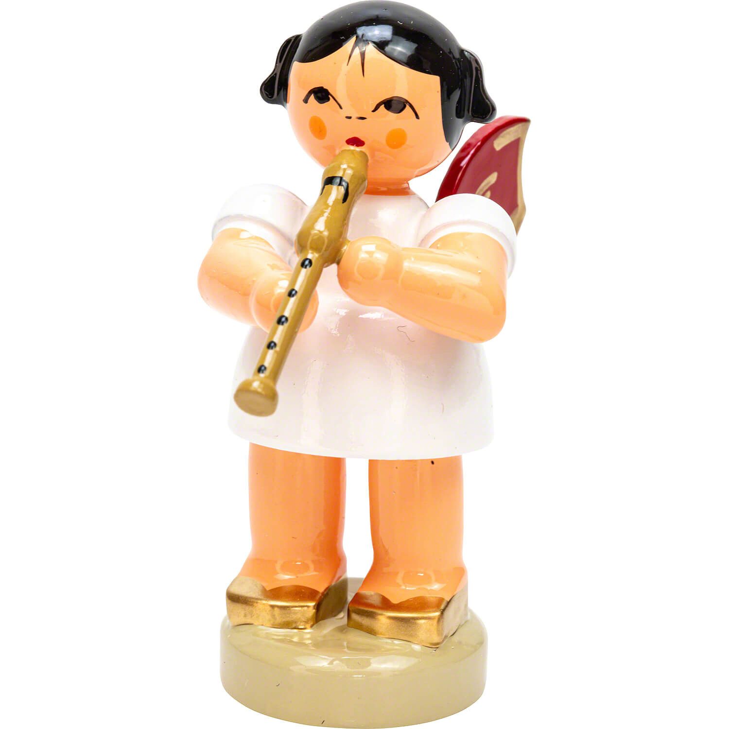 Dekofigur Engel mit Blockflöte - Rote Flügel - stehend (6cm) von Kunstgewerbe Uh