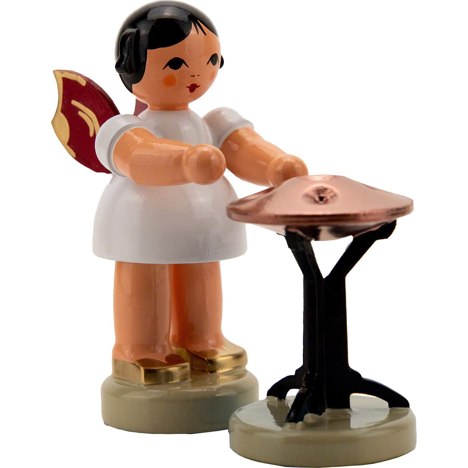 Dekofigur Engel stehend am Handpan - Rote Flügel (6cm) von Kunstgewerbe Uhlig