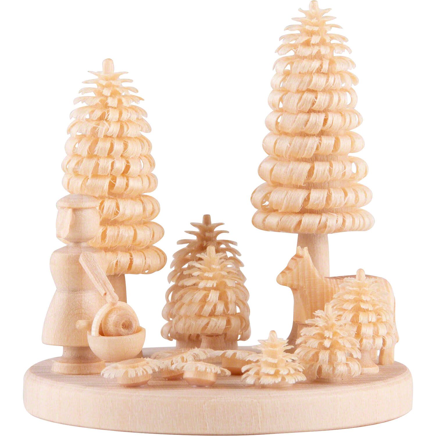 Diese Märchen-Miniatur ist in liebevoller Handarbeit aus winzigsten Holzteilen erbaut. Auf einer Fläche von nur wenigen Zentimetern wird so eine ganze kleine Welt lebendig. Das bezaubernde Stück Handwerkskunst stammt aus der Miniaturendrechslerei Uhlig in Lengefeld im Erzgebirge.
