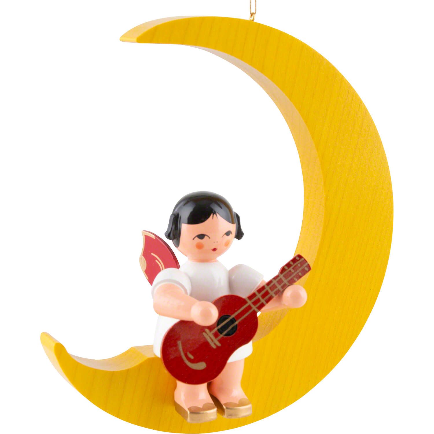 Figurenland Uhlig GmbH Dekohänger Engel mit Gitarre - Rote Flügel - sitzend im Mond gelb (16,5cm) von Ku
