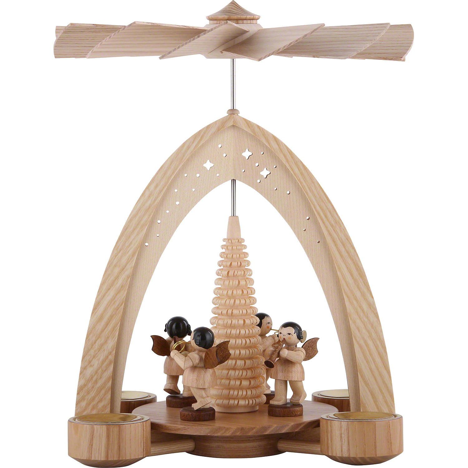 Weihnachtspyramide 1-stöckige Pyramide mit Engeln natur mit Blasinstrumenten (26x21x16cm)