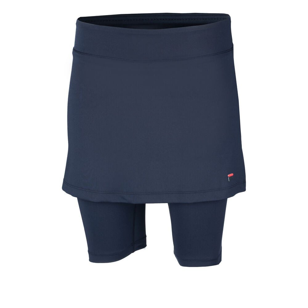 Skort Nele - hat eine etwas längere Ballhose bis zum Knie und einen leicht schwingenden Rock mit höherem Bund. Kleines Fila-Logo am unteren Saum des Rockes.